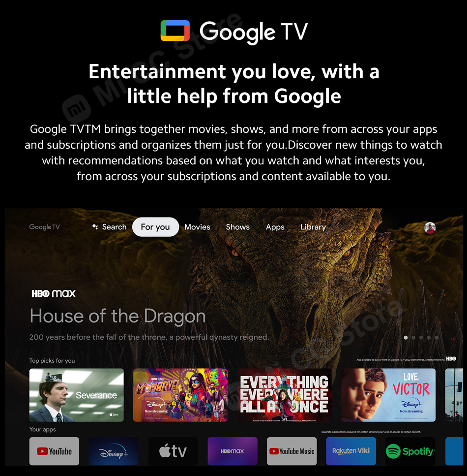 Google TV™Объединяет фильмы, шоу и многое другое со всех ваших приложений и подписок и организует их только для вас. Откройте для себя новые вещи и рекомендации, основанные на том, что вы смотрите и что вас интересует, из разных подписок и доступного вам контента.