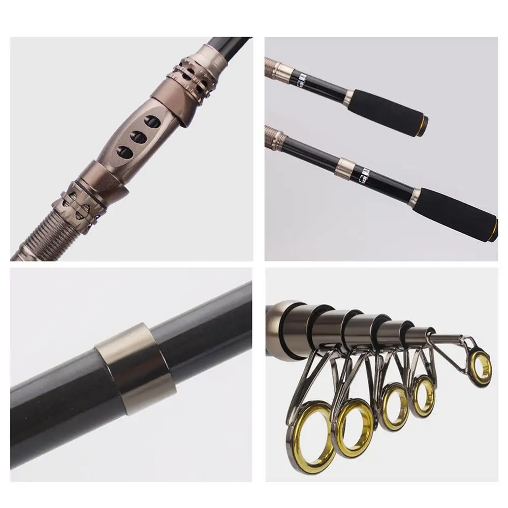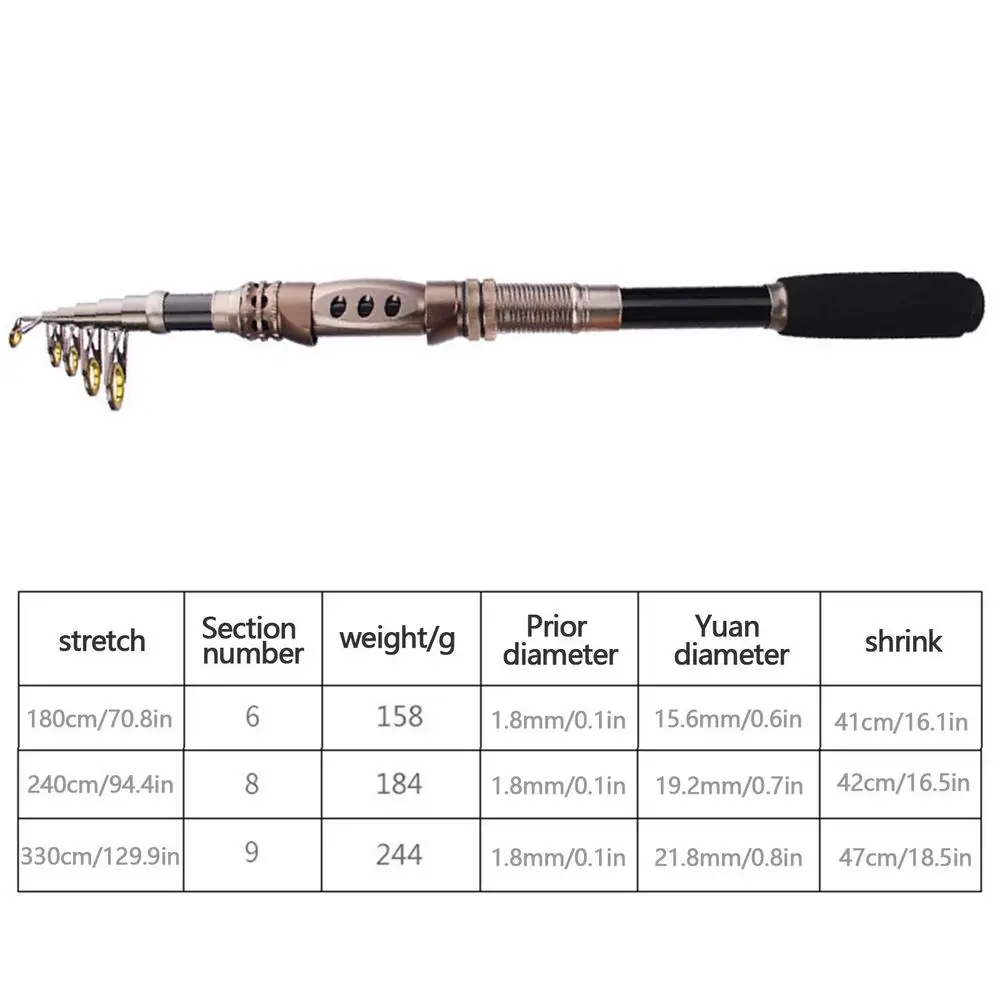1.[Легкий захват] Легкая и компактная для легкой рыбалки, телескопическая удочка удобна для захвата во время рыбалки, с удлиненной и регулируемой ручкой.