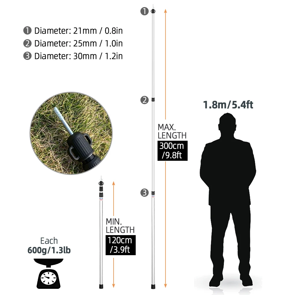 Телескопические брезентовые палки 300 см, палатки для кемпинга, портативные легкие алюминиевые стойки для палатки для навесов, навесы для дождевой мухи