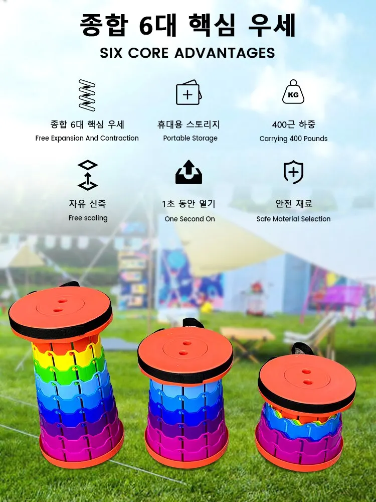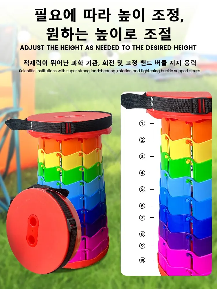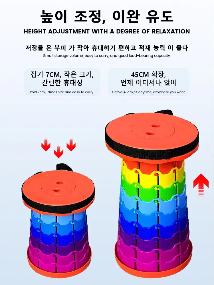 Складной Телескопический стул Табурет для хранения Открытый дорожный складной стул Регулируемый пластиковый рыболовный стул Радужный Телескопический стул