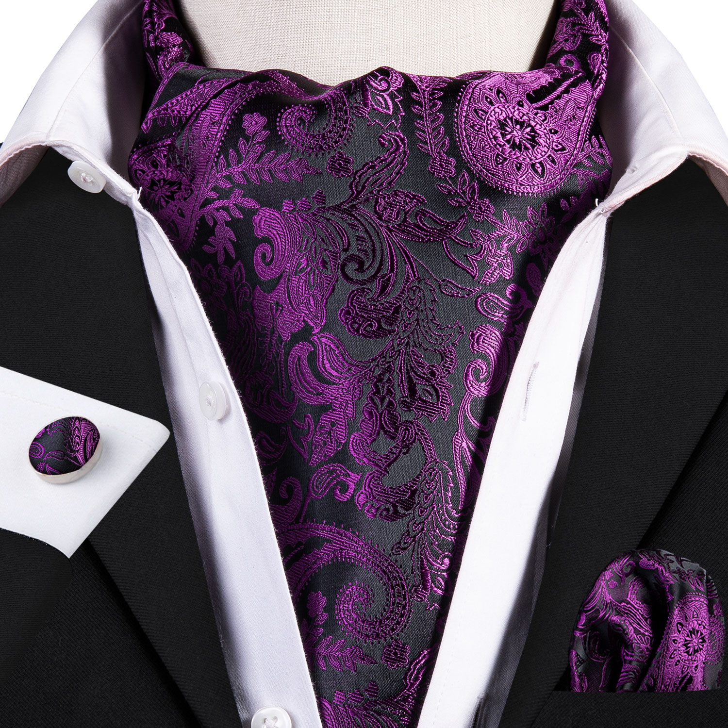 Темно-фиолетовый роскошный галстук-пальто для мужчин Ретро Шелковый жаккардовый носовой платок Пейсли Наборы запонок для вечеринки Свадьба Барри. Ван SA-0026