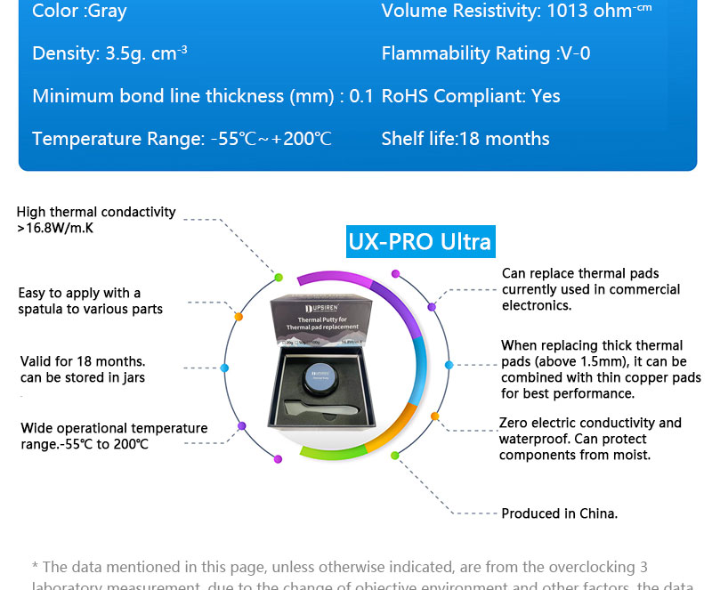 3. Термошпатлевка UX PRO Ultra имеет теплопроводность K> 16,8 Вт/м. К (как минимум в 3 раза выше, чем у обычных термопрокладок, используемых в компьютерах и коммерческой электронике).