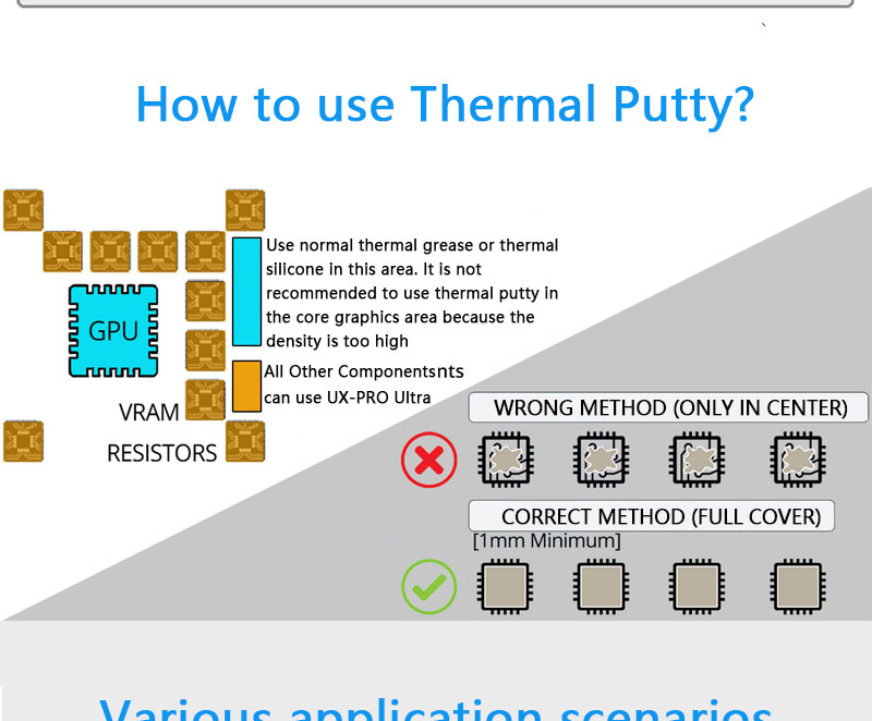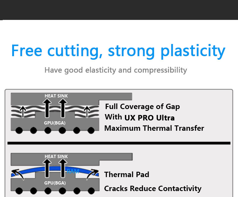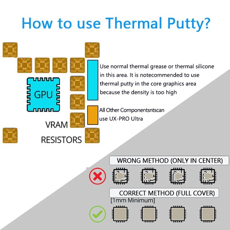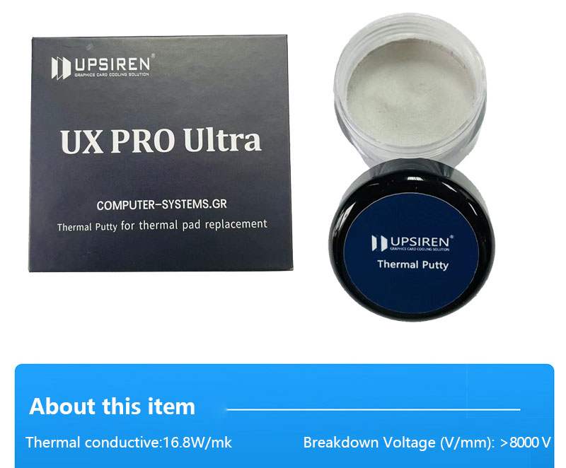 1.UX PRO Ultra Thermal Putty-это высококачественная липкая термопаста, предназначенная для использования на микросхемах памяти и графических процессорах различных компьютеров.
