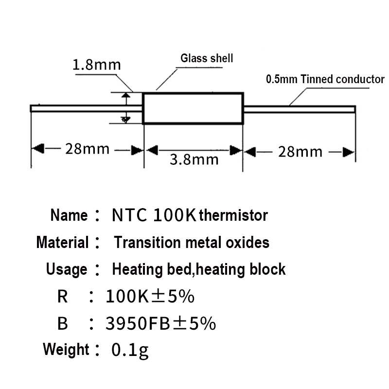 Рекомендуемые параметры:R25 ℃ = 100K +/- 5% B25/50 = 3950K(± 1%)