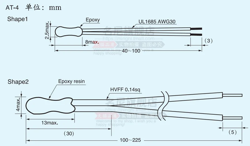 Термистор Semitec NTC 103AT-4-040 103AT-4-050 103AT-4-70361 103AT-4-10228 103AT-4-70261 103AT-70316-70374 10 кОм 3435K 1%, 10 шт.