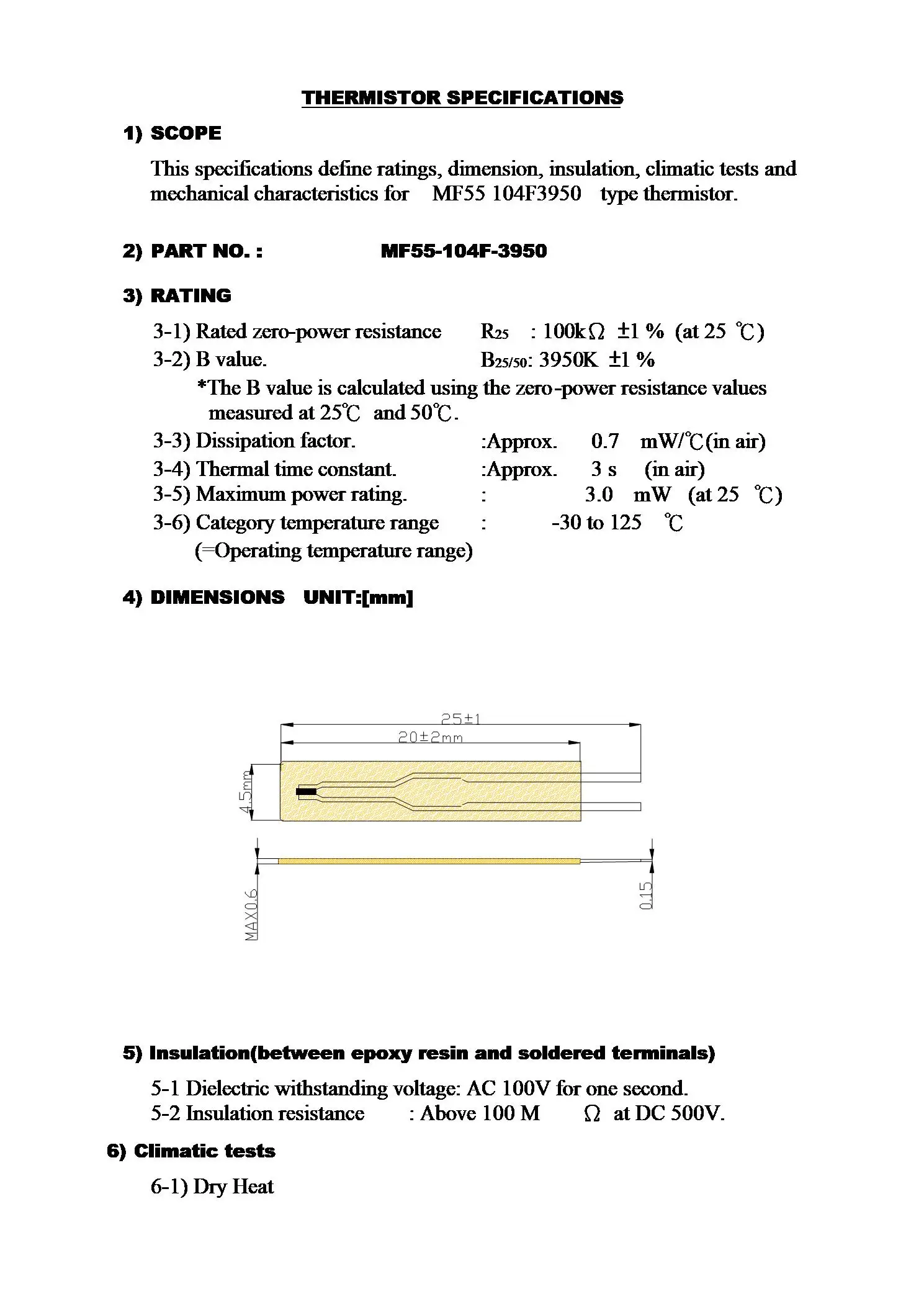 1: номинальное значение сопротивления нулевой мощности (R25): 10 кОм ~ 100 кОм