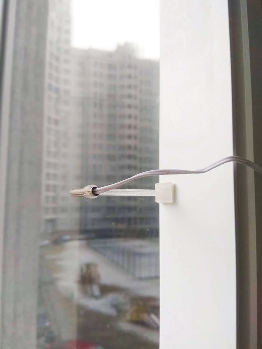 Термометр устанавливается на ручку пластикового окна внутри помещения