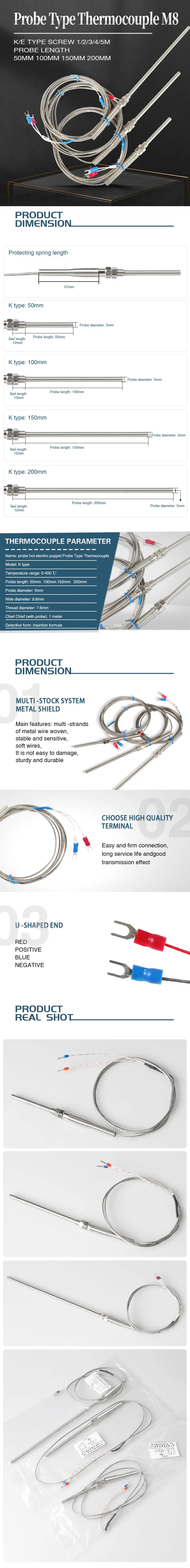 Термопара M8 1 м 2 м 3 м 4 м 5 м Тип K E 50 мм 150 мм 100 мм 200 мм Зонд винтовой резьбовой Кабель датчик температуры 0-400 ℃