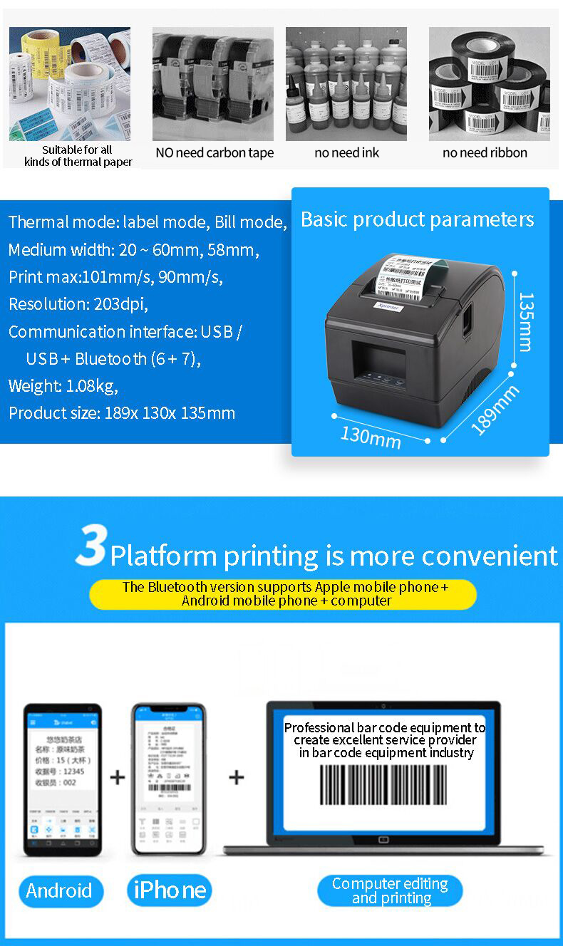 Примечание: эти принтеры поддерживают печать этикеток и чеков. Ширина печати на 20-80 мм.