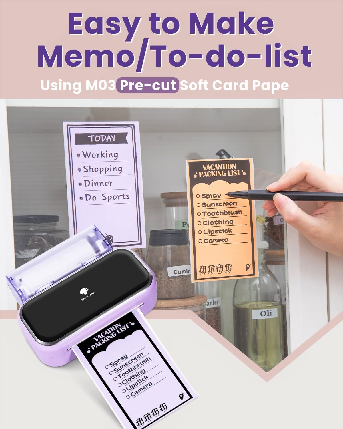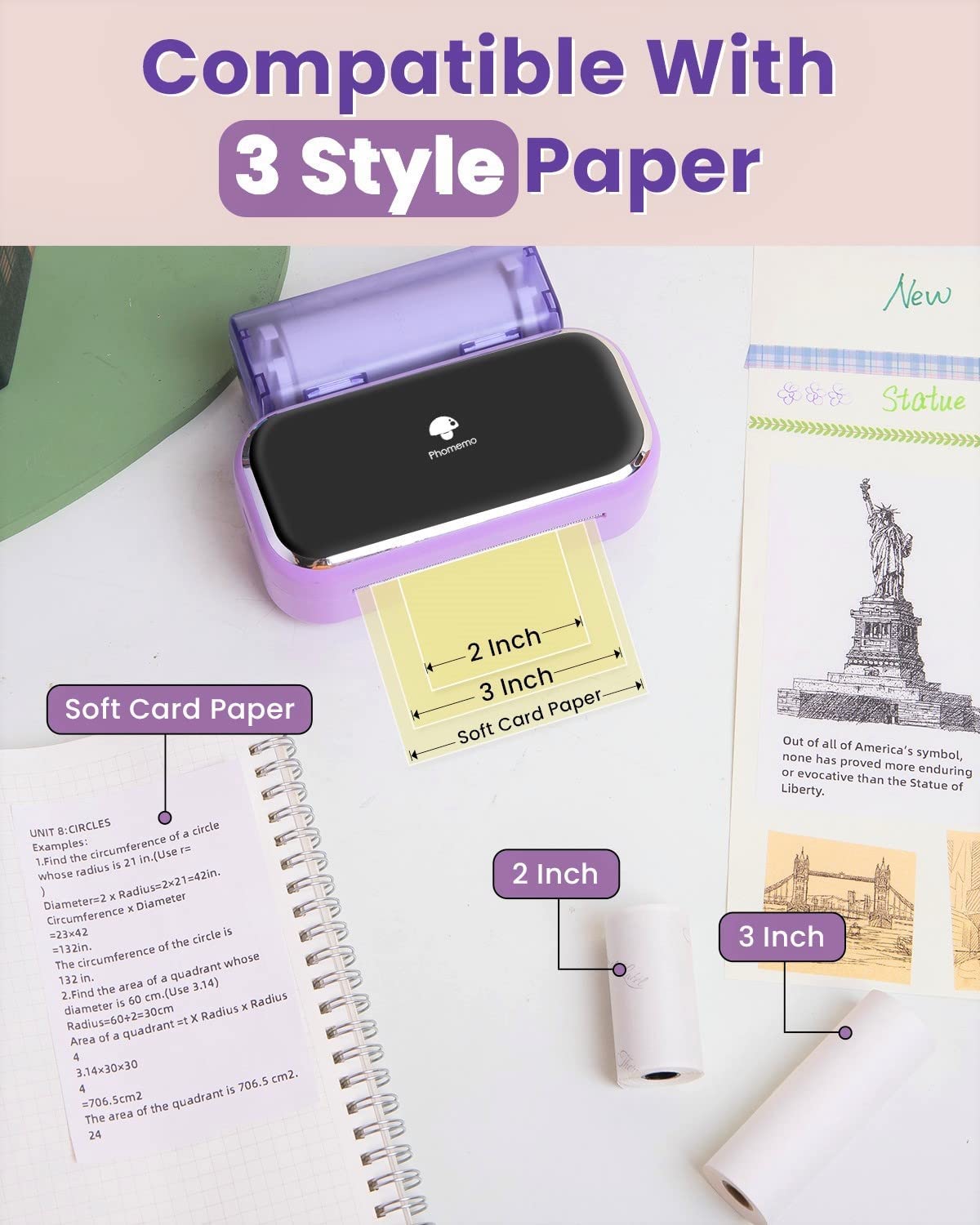 -Как широкоформатная обновленная версия принтера M02, M03 теперь может поддерживать печать больших и обычных размеров непрерывной термобумаги Phomemo M02 одновременно (ширина: 53, 80 мм). Есть 4 стиля: чистый цвет, узор, прозрачный, блестящий и два типа бумаги: наклейка и Нелипкая бумага для печати Phomemo. -Вы также можете легко раскрасить бумагу, за исключением прозрачных типов бумаги.