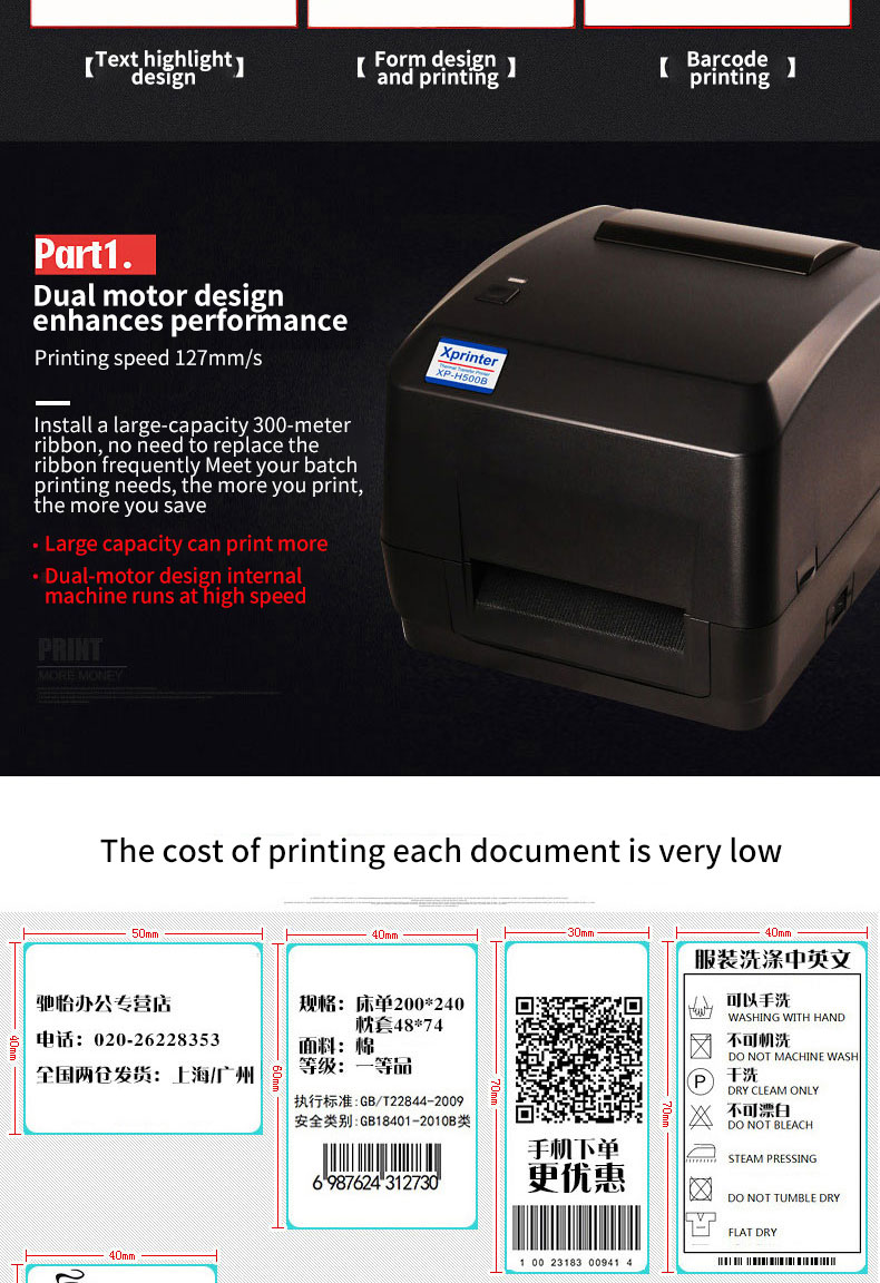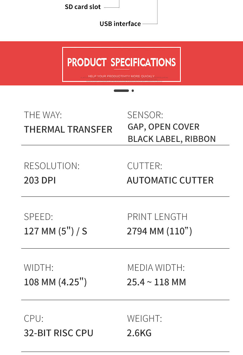 1. Поддержка как прямой термотрансферной, так и термотрансферной печати.