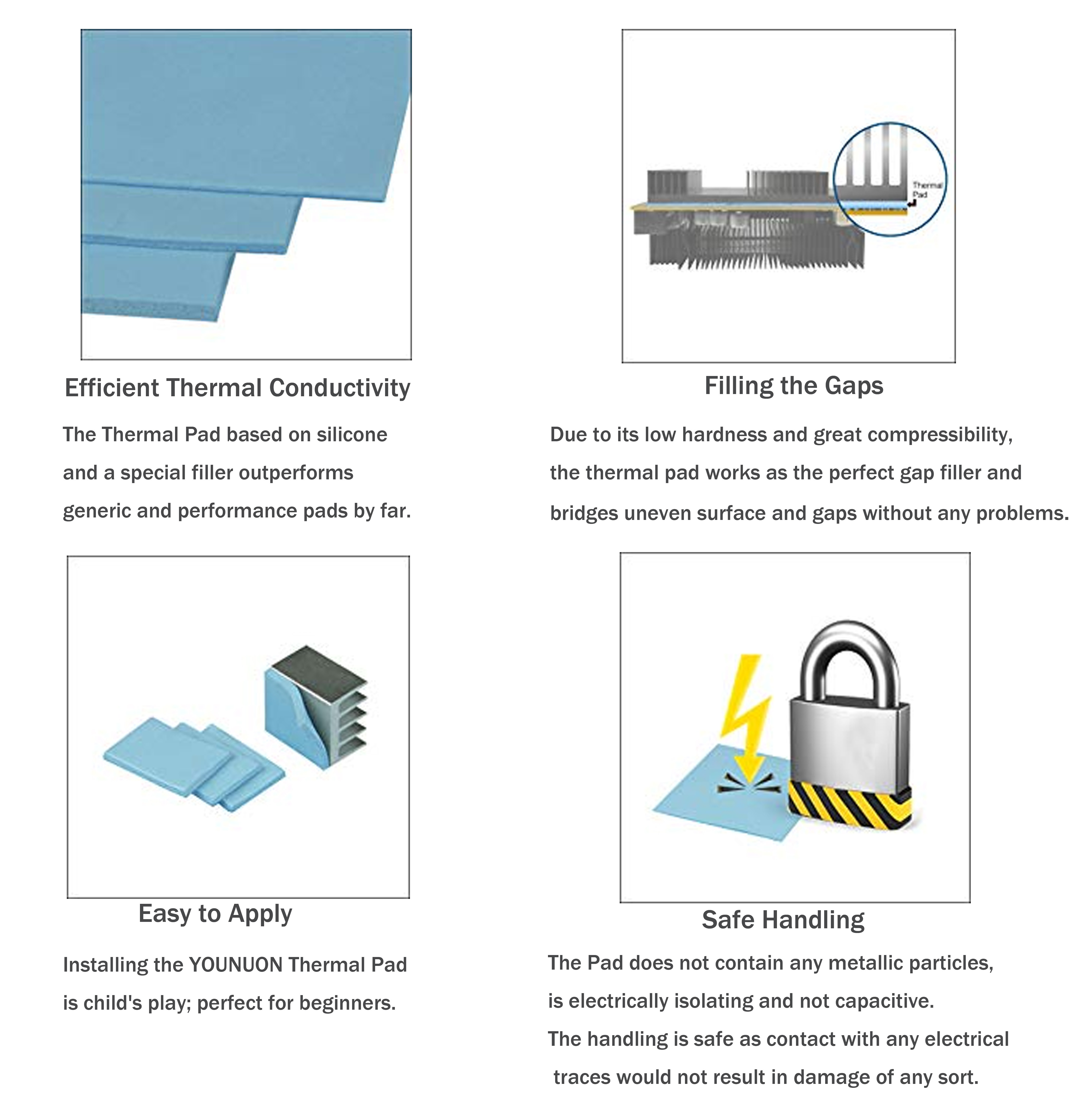 • ЛЕГКО И БЫСТРО ПРИМЕНЯТЬ: установка термоподушки-это детская игра и идеально подходит для начинающих. Идеальный высокопроизводительный заполнитель зазоров! Электрически не Проводящий.