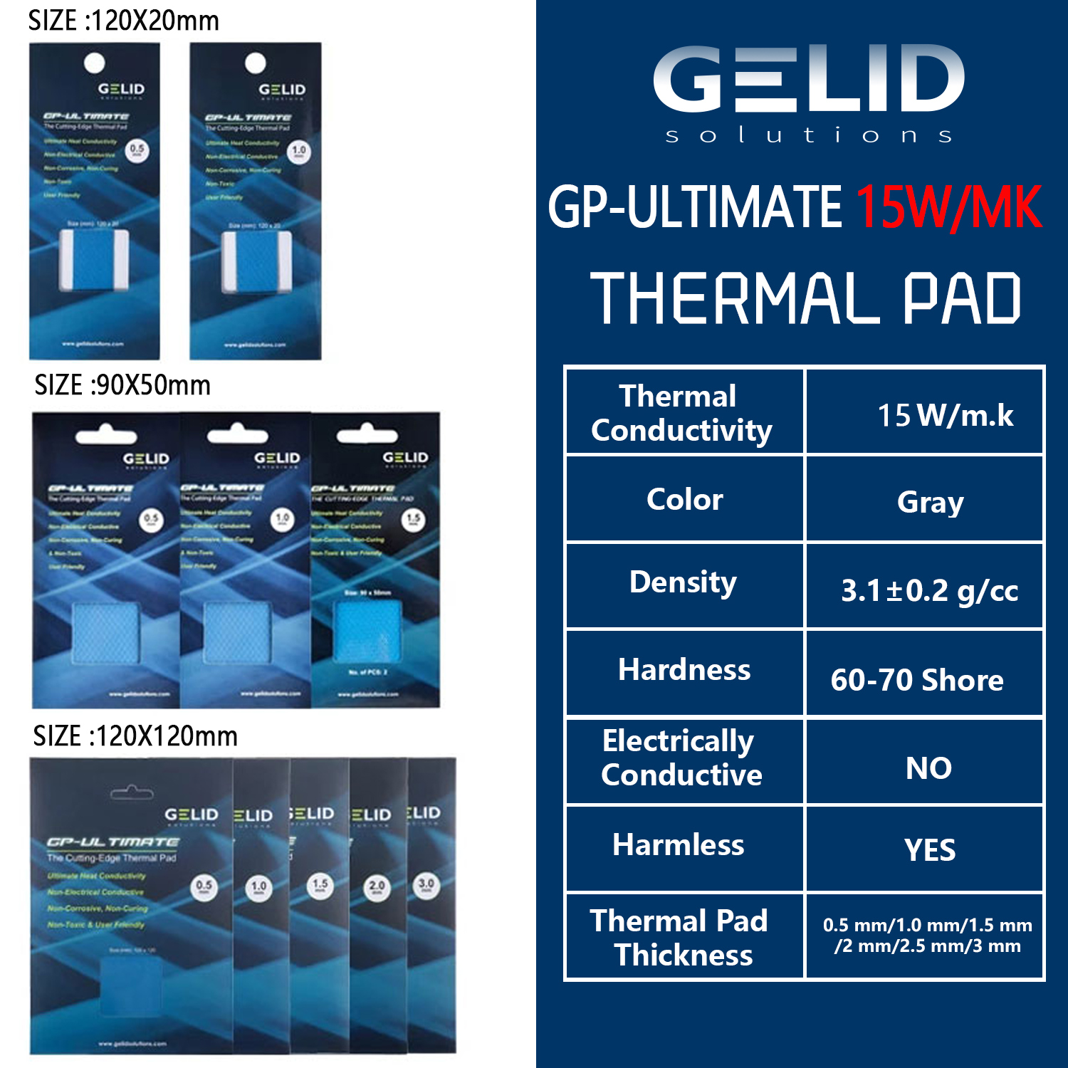 Термопрокладка GELID GP-Ultimate для ЦПУ, 15 Вт, 12 Вт, графическая материнская плата, теплоотвод 1,0/1,5/2,0/3,0 мм