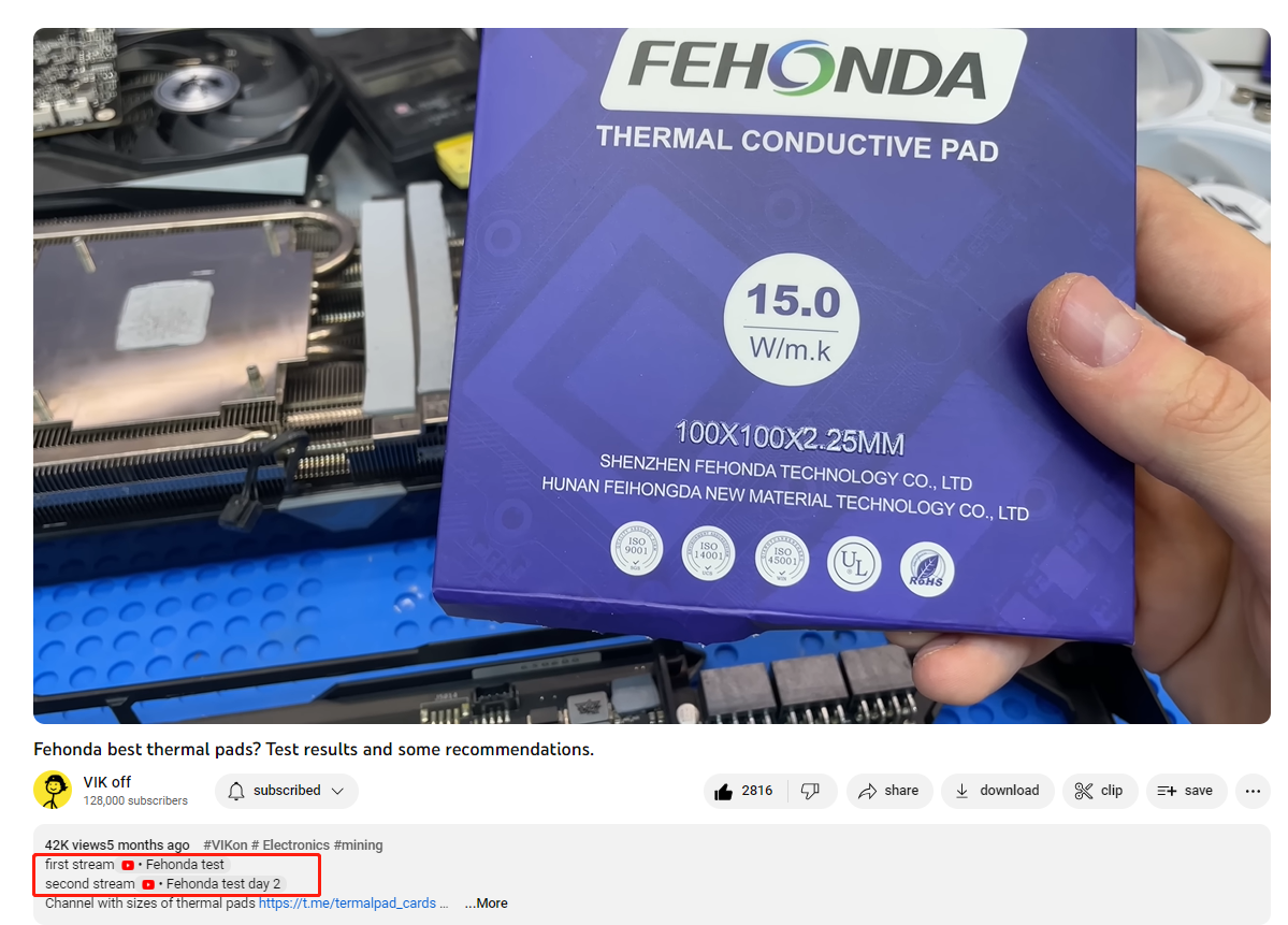 VIK off(VIK on) тест термопрокладки Fehonda 15w в прямом эфире на Youtube