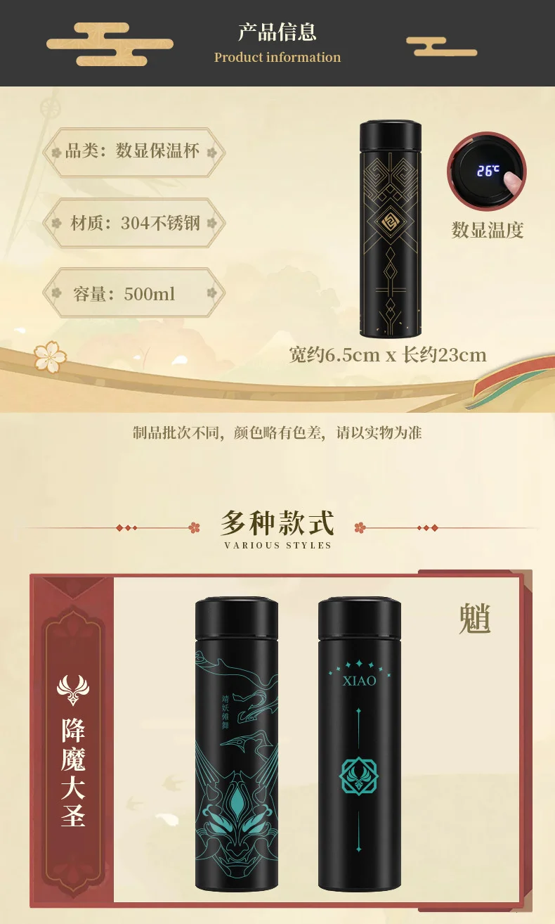 500 мл Вакуумная чашка Genshin Xiao Zhongli HuTao термос светодиодный температурный дисплей термос из нержавеющей стали