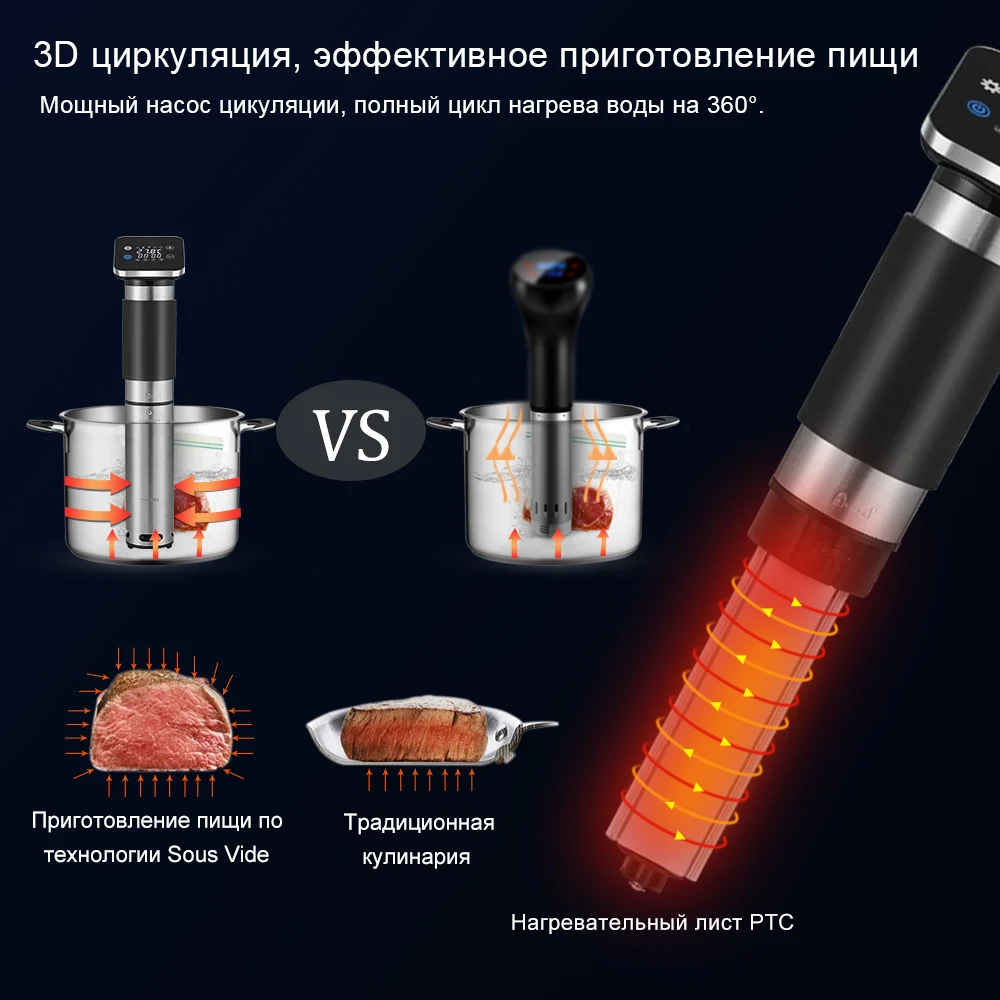 Быстрая циркуляция тепла на 360 °: погружной циркулятор Sous vide с насосом из нержавеющей стали с циркуляцией тепла на 360 °. Эффективно переносит тепло.