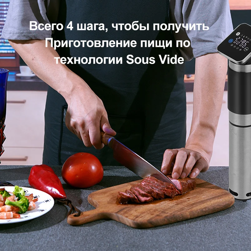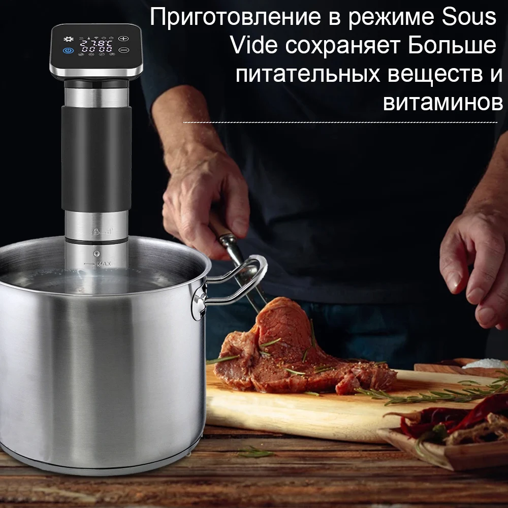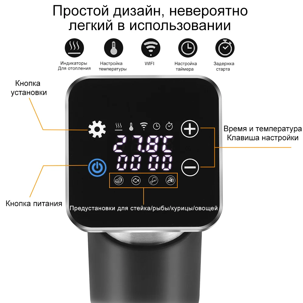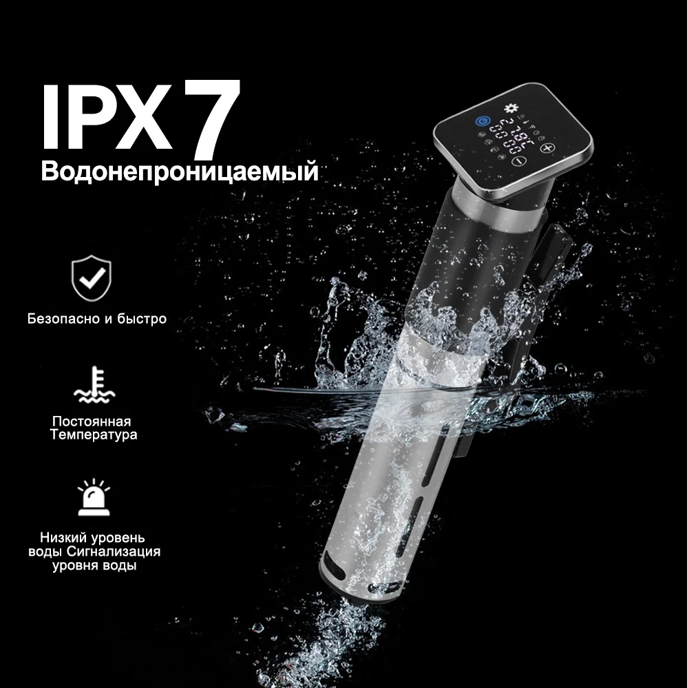 Водонепроницаемость IPX7: Sous vide сертифицирована на водонепроницаемость IPX7. Нет риска попадания пара во внутренние части и, следовательно, имеет длительный срок службы и безопасность!