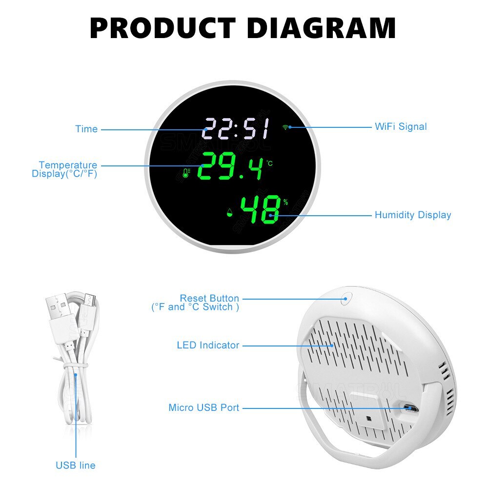 Tuya WiFi Датчик температуры и влажности Умный внутренний гигрометр Термометр со светодиодной подсветкой дисплея Поддержка Google Home Alexa