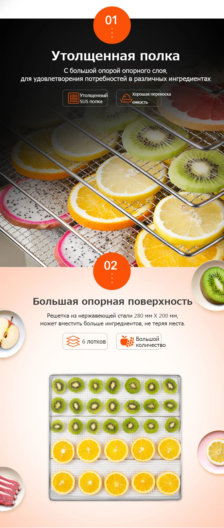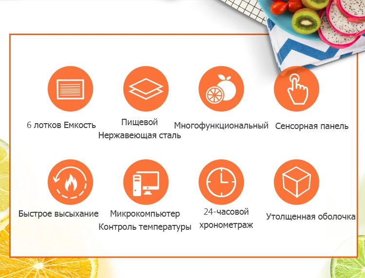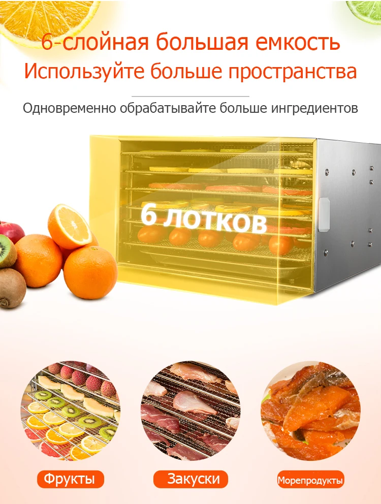 Термостатическая сушилка для фруктов с сенсорным управлением и таймером на 24 часа