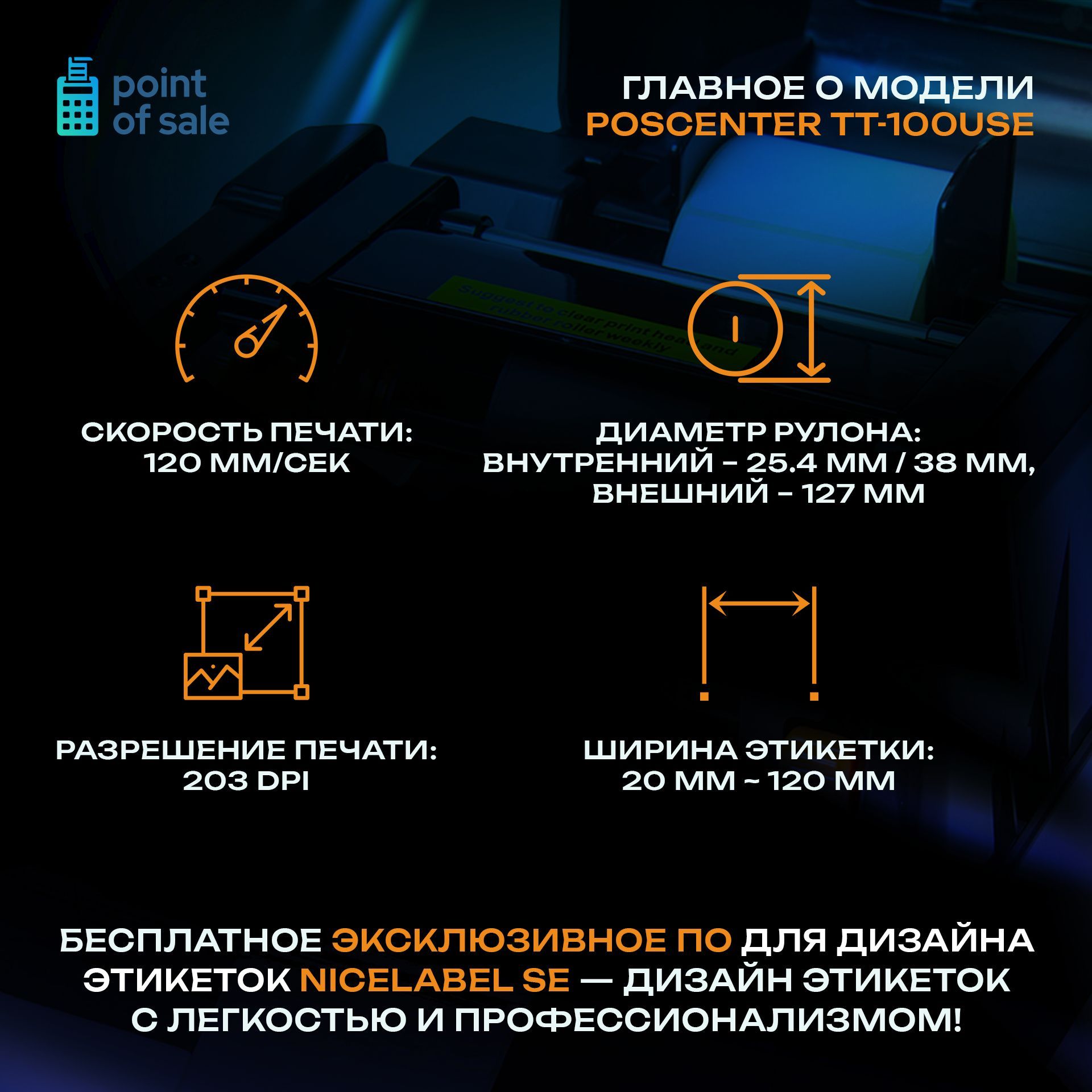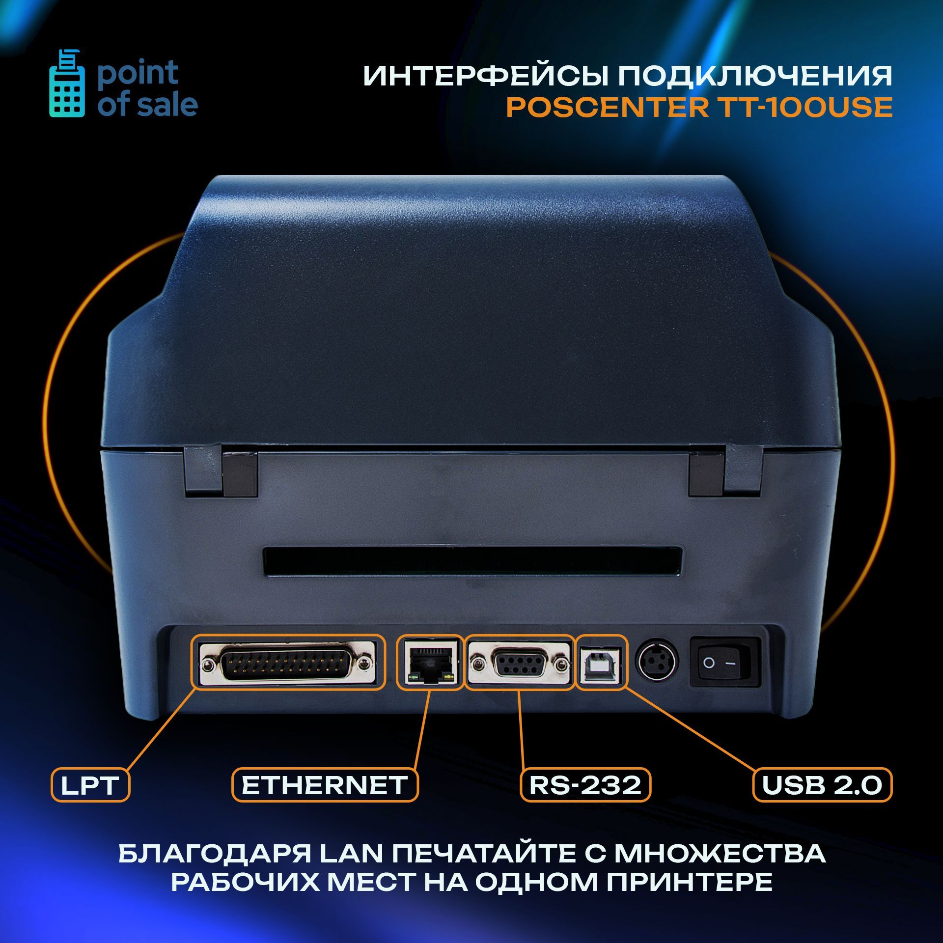 Термотрансферный принтер этикеток POScenter TT-100USE (USB, RS-232, Ethernet)