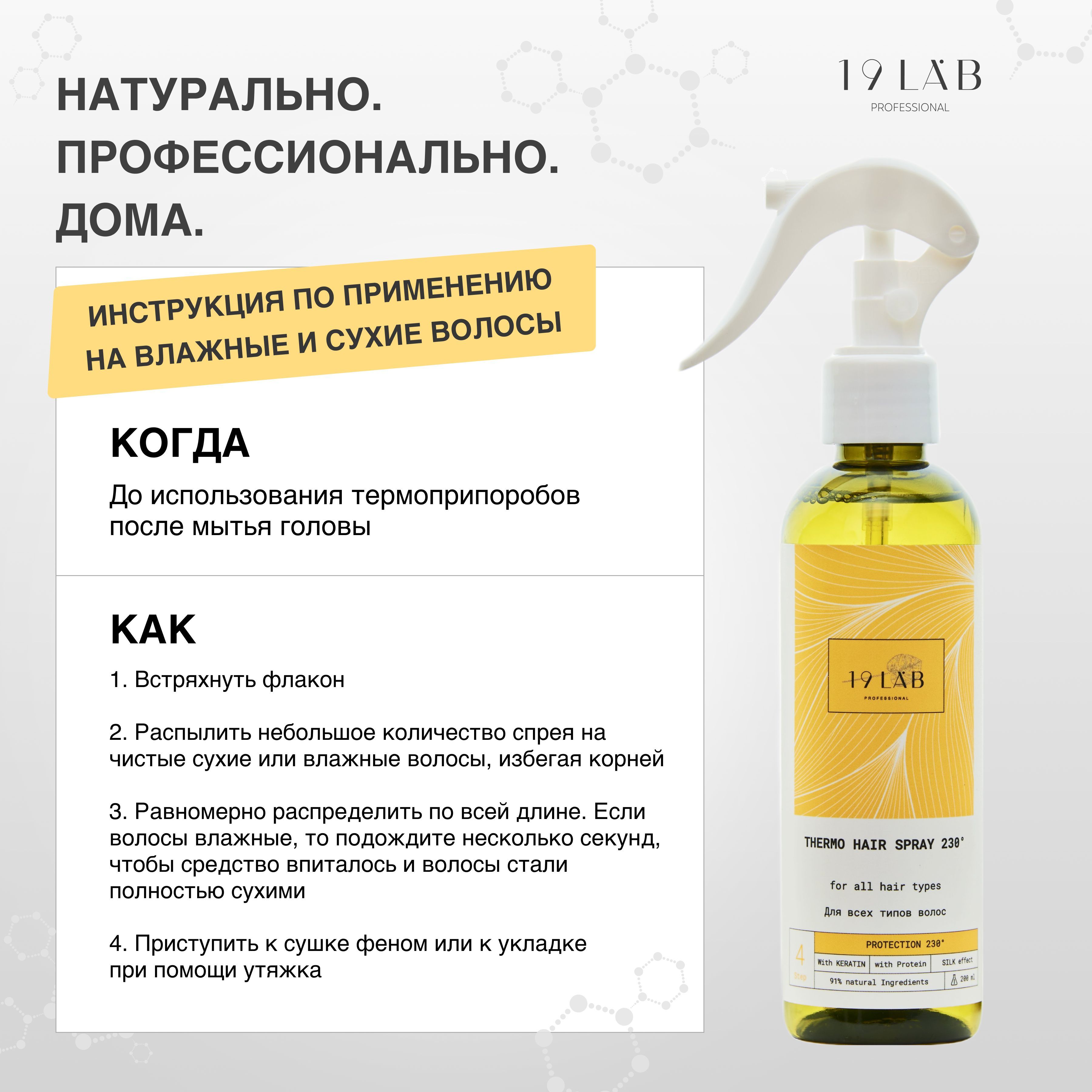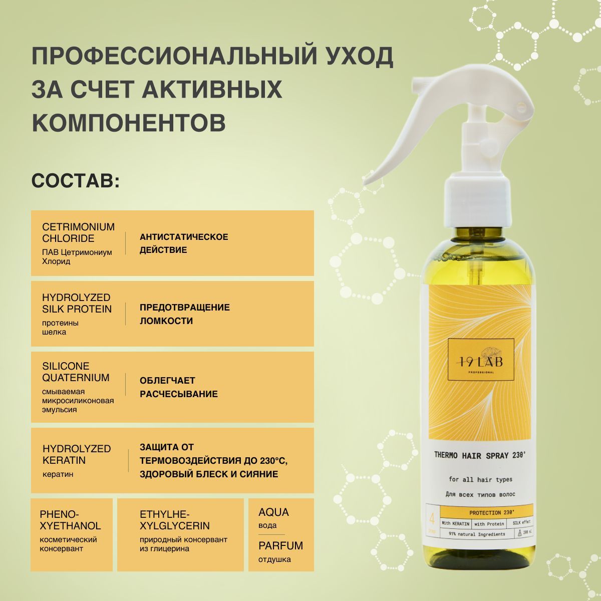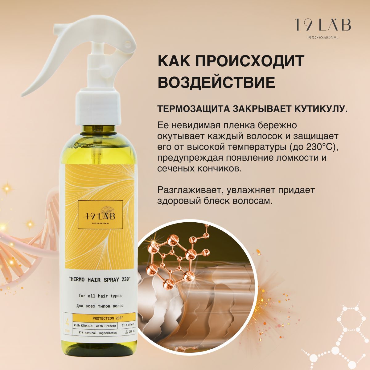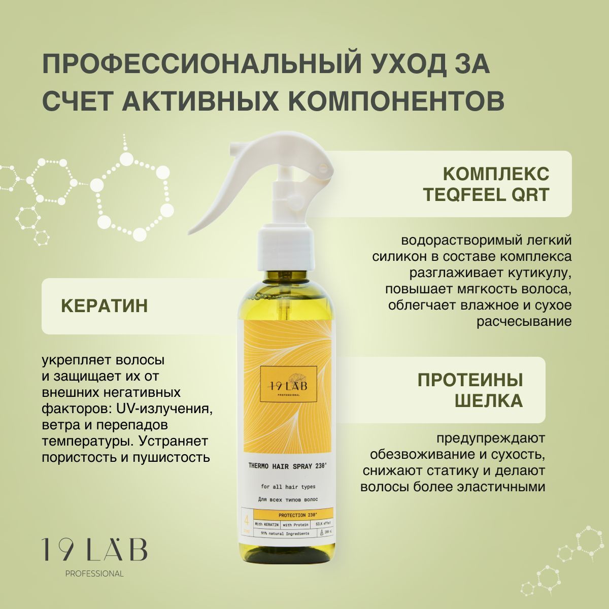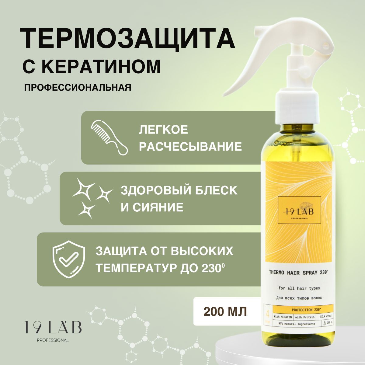 Термозащита для волос 19 LAB спрей профессиональный с кератином защита от фена и утюжка