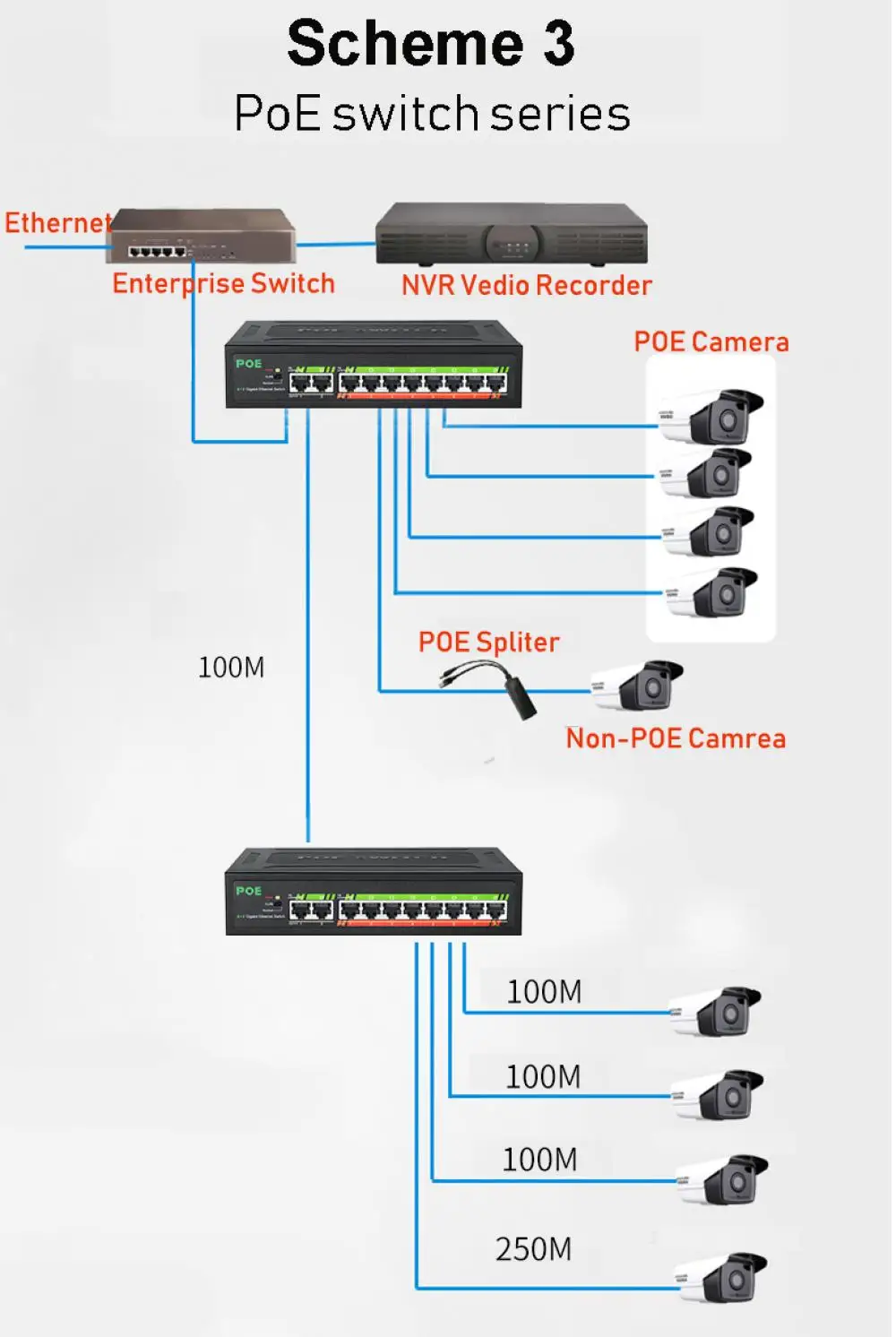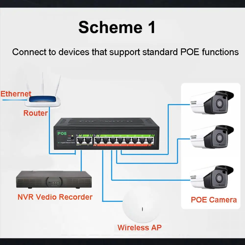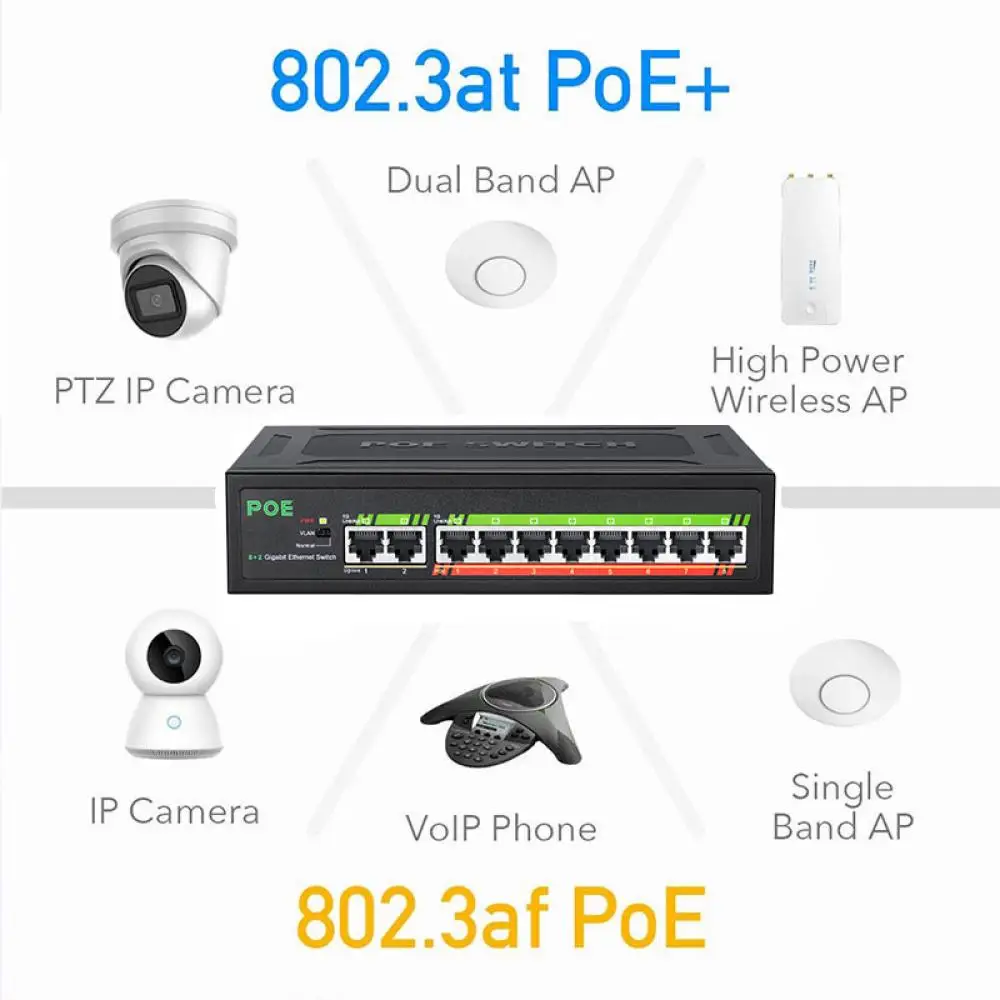Коммутатор POE прост в использовании, без конфигурации, подключи и работай, гибкое расширение домашних и офисных сетей без ограничений по компоновке линий электропередачи: Идеально подходит для коммутаторов PoE малого и среднего размера.