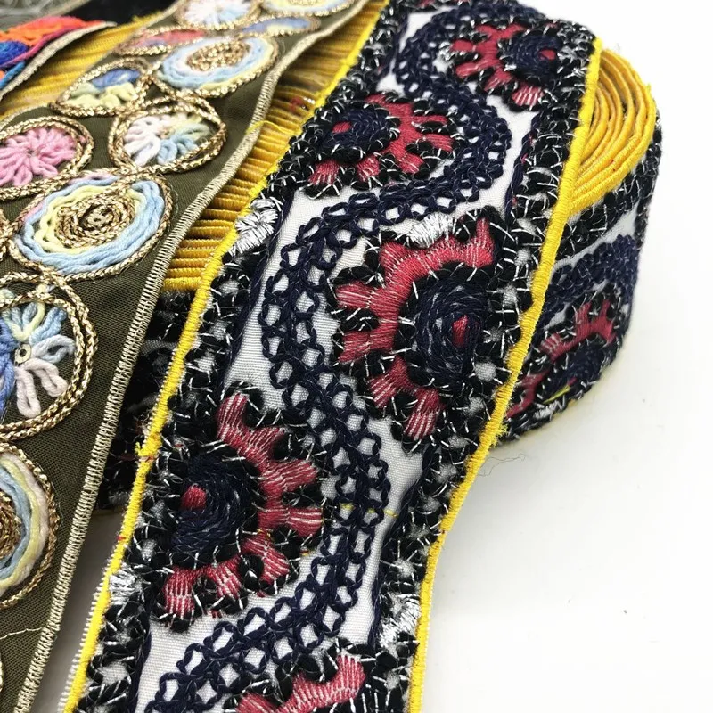 Тесьма с этнической вышивкой, 1 ярд, индийская отделка, ленты для рукоделия, для шитья одежды, декоративная кружевная отделка
