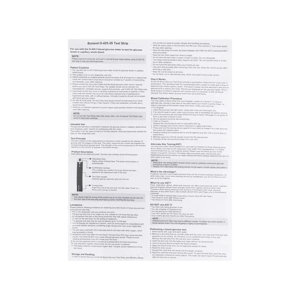 G-425-3 тест-полоски глюкозы в крови обеспечивают количественное измерение глюкозы в цельной крови с микрозабором крови, удобно использовать.