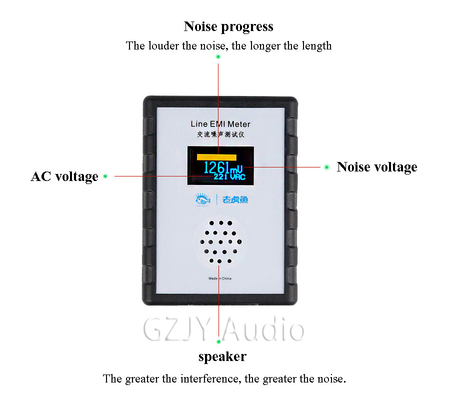 Основная функция этого тестера шума сети переменного тока заключается в отображении текущего значения напряжения и значения шумового напряжения сети на OLED-матричном экране панели. Таким образом, каждый может очень интуитивно видеть текущее состояние электросети и иметь точное суждение о качестве источника питания.
