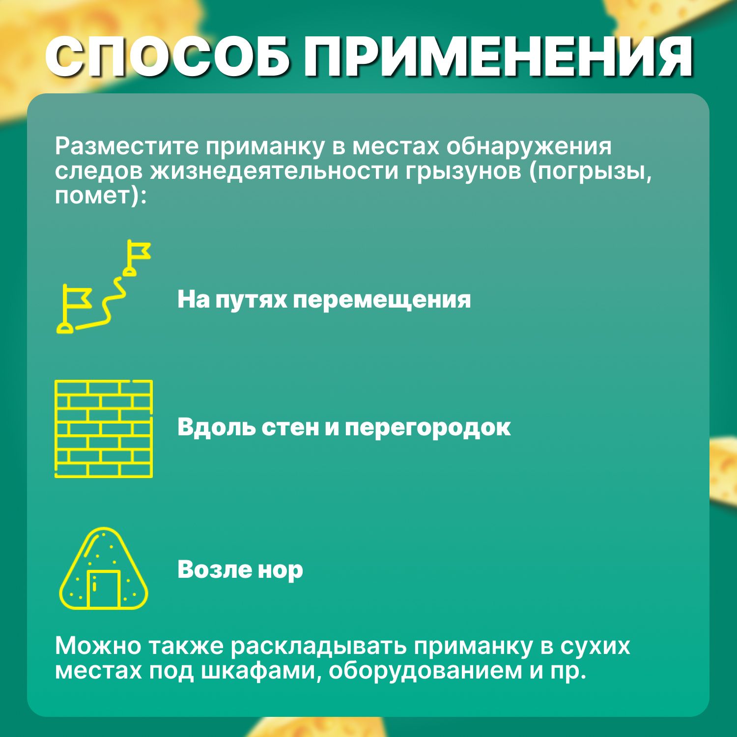Описание: Приманка в форме тесто-брикета создана специально для борьбы с крысами, так как в своем обычном питании крысы, в отличие от мышей, предпочитают не столько зерно, сколько разнообразный корм растительного и даже животного происхождения.