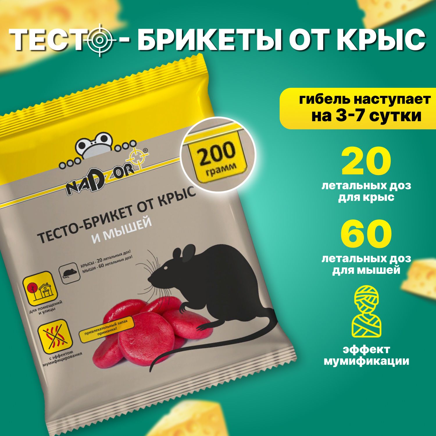 Тесто-брикет - эффективная отрава от крыс и мышей, 200 г / Средство от грызунов в удобной форме