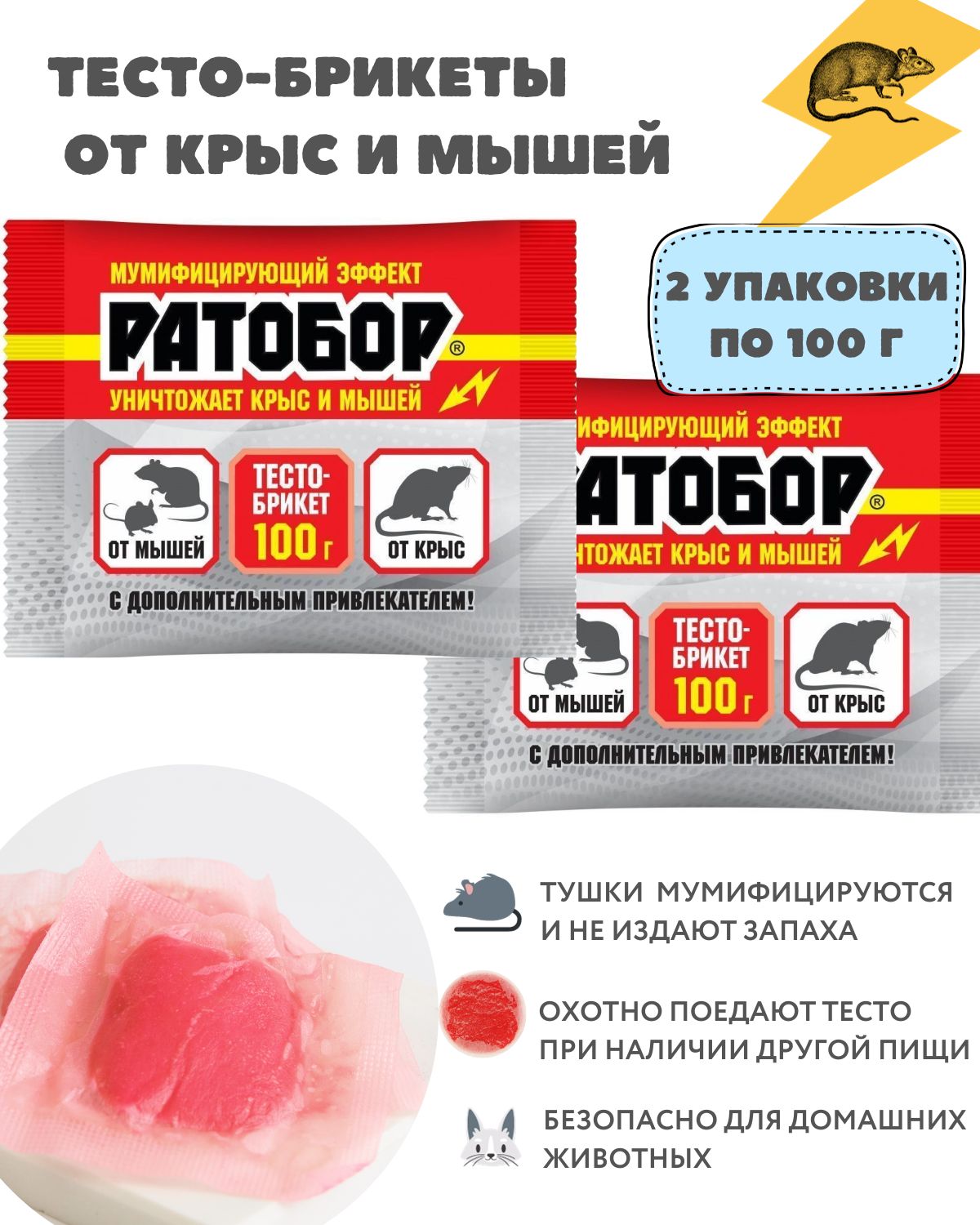Тесто - брикеты от грызунов Ратобор / средство от крыс и мышей мумифицирующее 2 штуки по 100 грамм