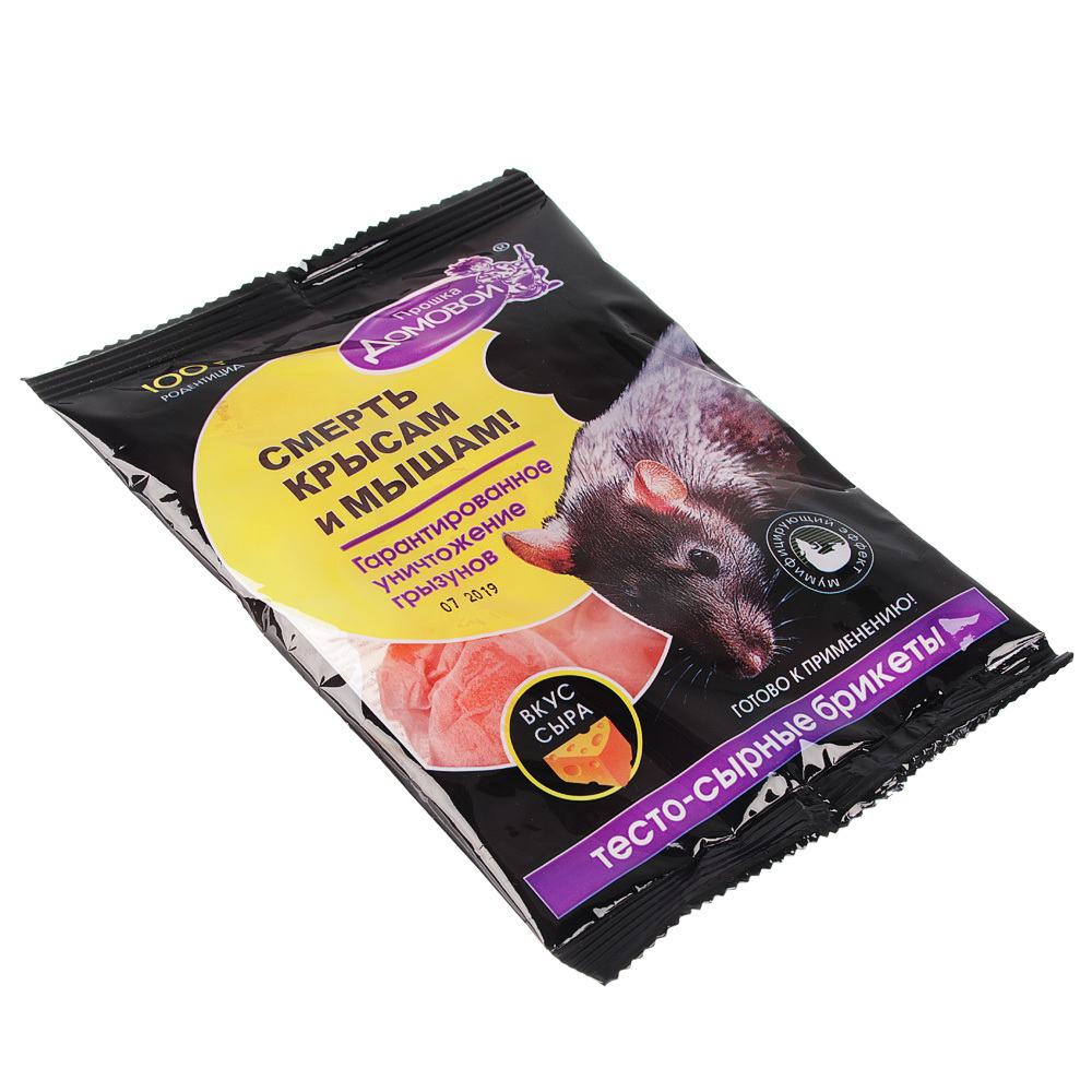 Описание: Мягкие тесто-сырные брикеты для уничтожения крыс и мышей в личных подсобных хозяйствах, квартирах, домах.