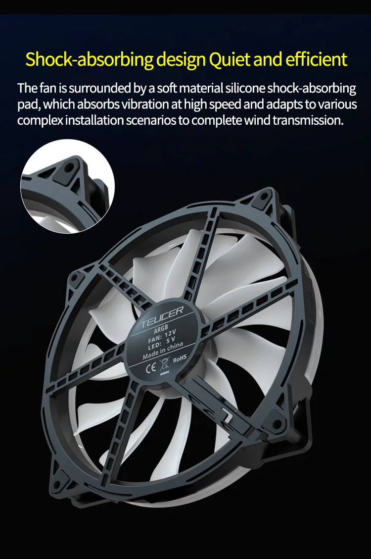 TEUCER FD200 чехол вентилятор 200 мм 5 в 3PIN ARGB компьютер чехол охлаждающий вентилятор аксессуары для ПК