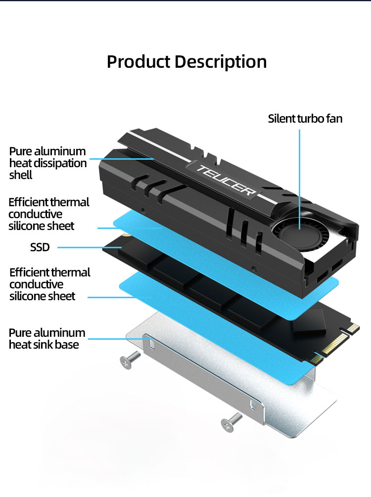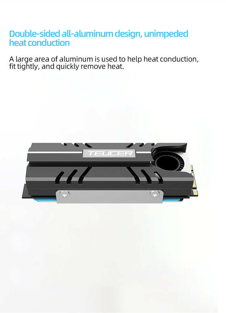 TEUCER M.2 SSD NVMe Радиатор 2280 Твердотельный дисковый охладитель с циркуляцией воздуха Прокладка радиатора с термопрокладкой и вентилятором 10,8 Вт/МК