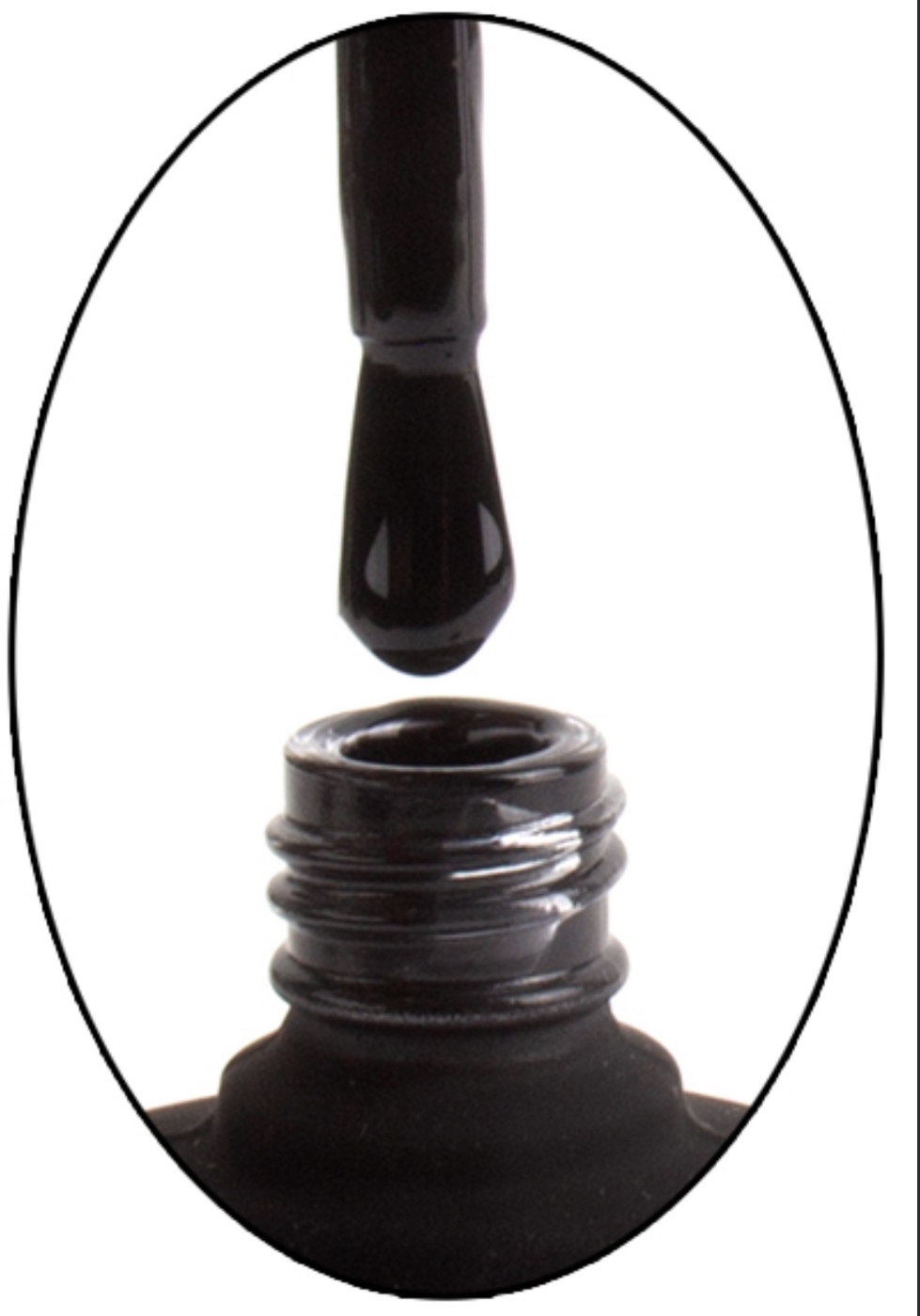 Гель лак отличается густой консистенцией, высокой пигментированностью и плотностью черного оттенка.