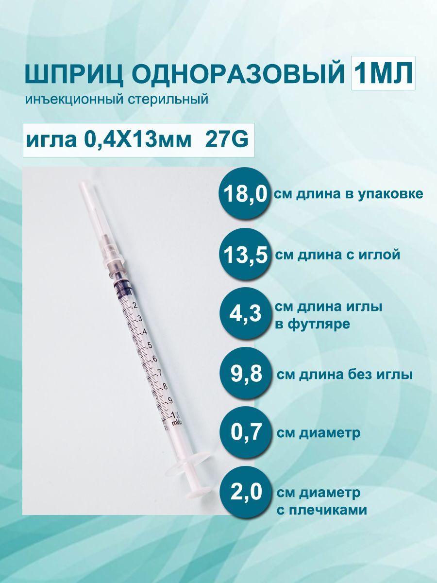 Описание: Трёхкомпонентный 3PC инсулиновый шприц 1 мл U-100 LUER ЛУЕР инъекционный одноразовый стерильный. Представленный инсулиновый шприц медицинский 1 мл с иглой 27G (0,4*13 мм). Шприцы 1 мл для уколов упакованы в стерильную упаковку.