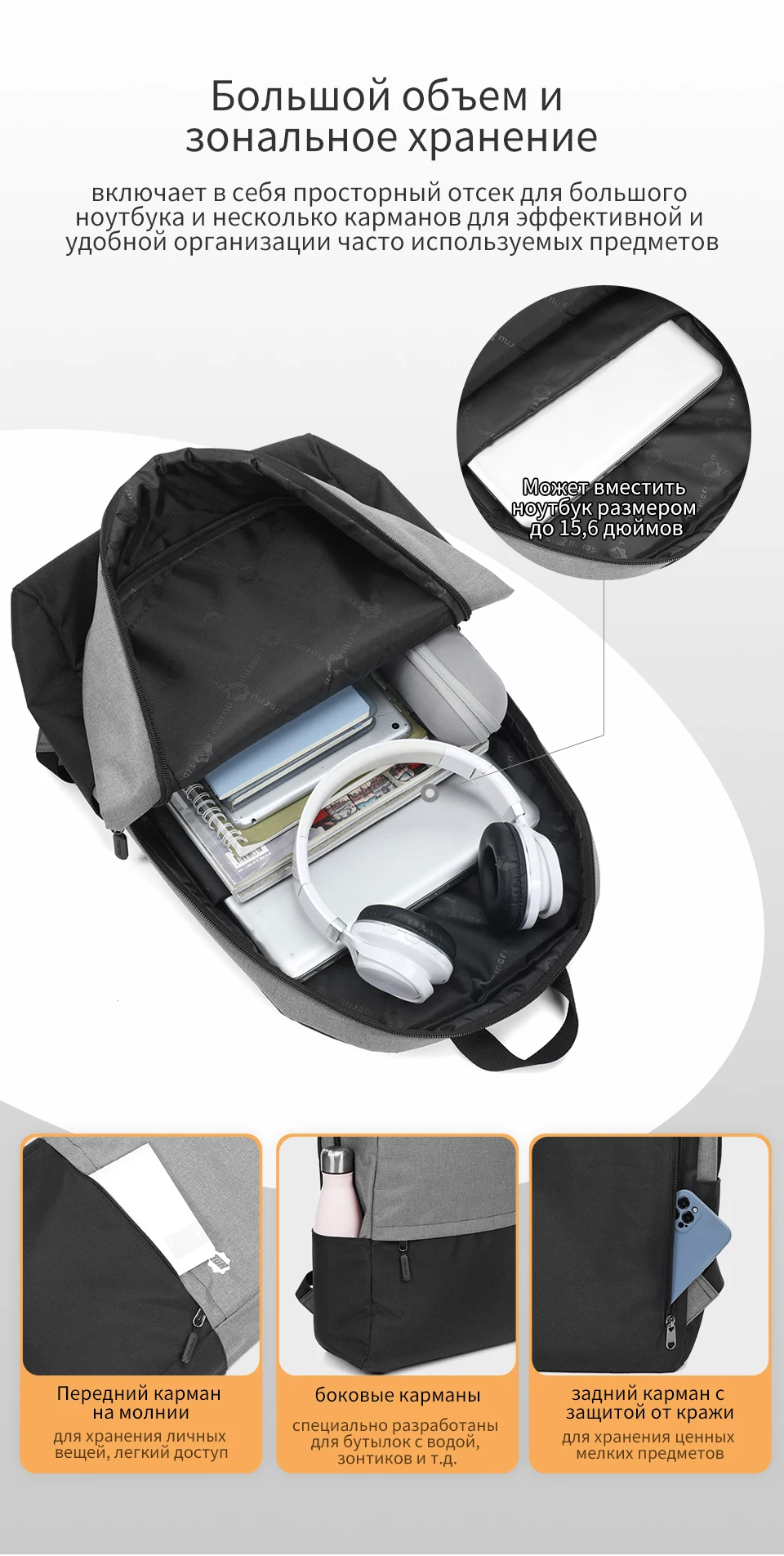 4. Большая емкость с функциональными карманами.
