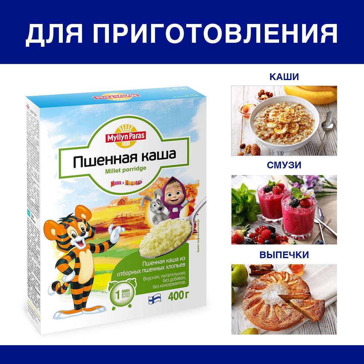 Тигренок Каша пшенная "Маша и Медведь" Myllyn Paras (Мюллюн Парас) 400 г