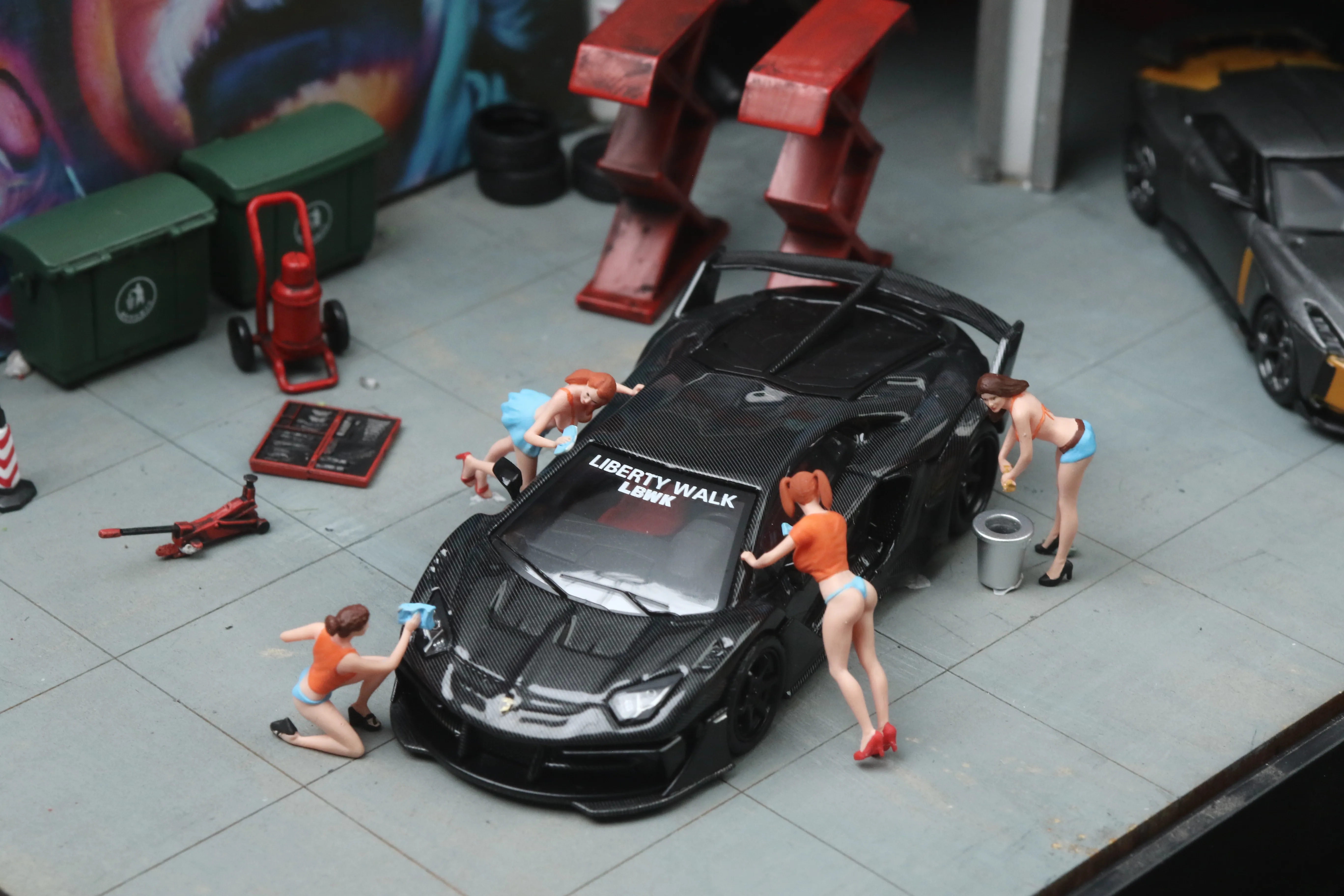 TIME MICRO MoreArt 1:64 модель автомобиля, фигурки для ремонта женщин/мойка девушка, сцена для дисплея, коллекции и украшения