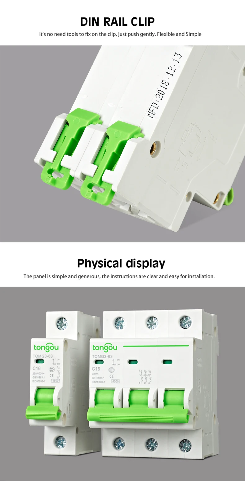 Тип B кривая 1 полюс MCB 18 мм миниатюрный автоматический выключатель 4.5KA AC 110 В/230 В/400 В с сертификатом CE TOMG3-63 TONGOU