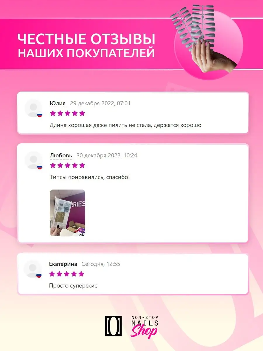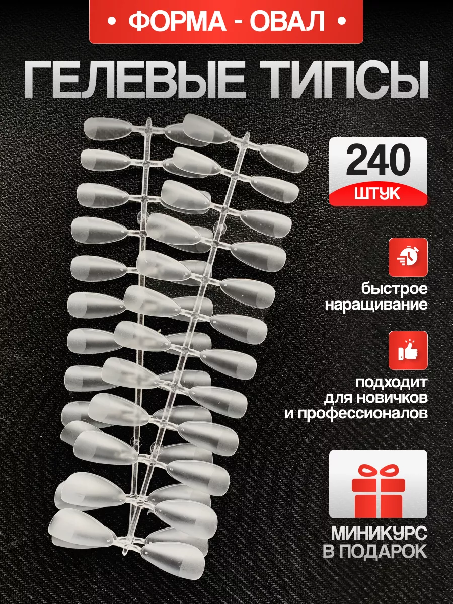 Комплектация гелевые типсы в коробке - 240 шт; коробка - 1 шт; пакет упаковочный - 1шт