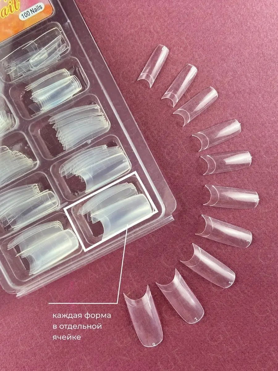 Комплектация прозрачные накладные ногти 100 штук, типсы для ногтей 10 размеров по 10 штук