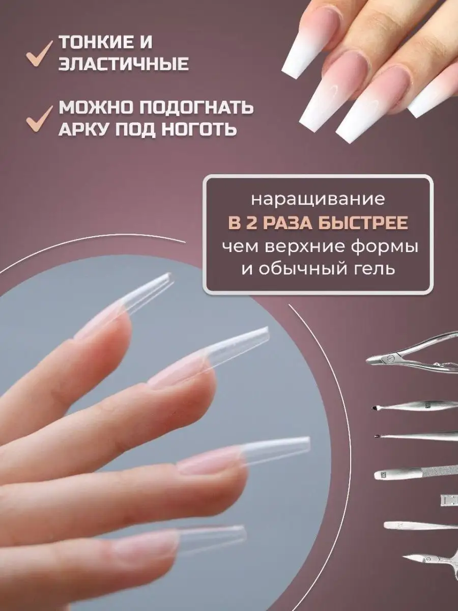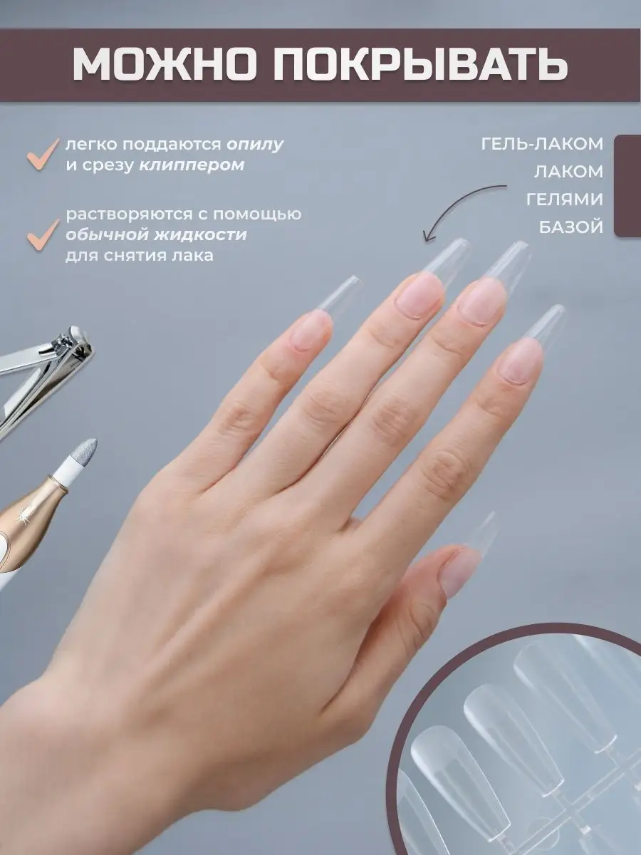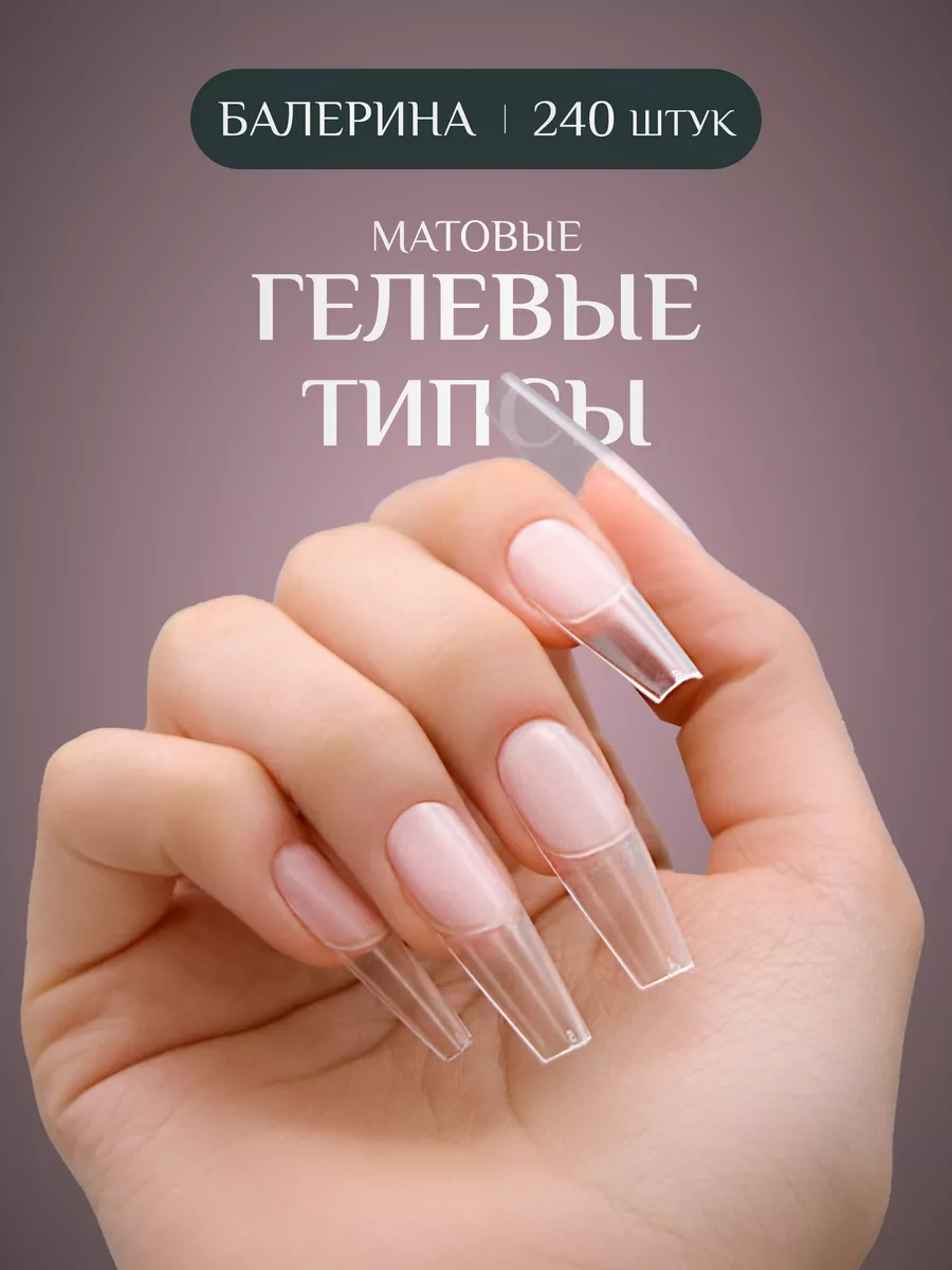 Типсы гелевые балерина матовые для наращивания 240 шт