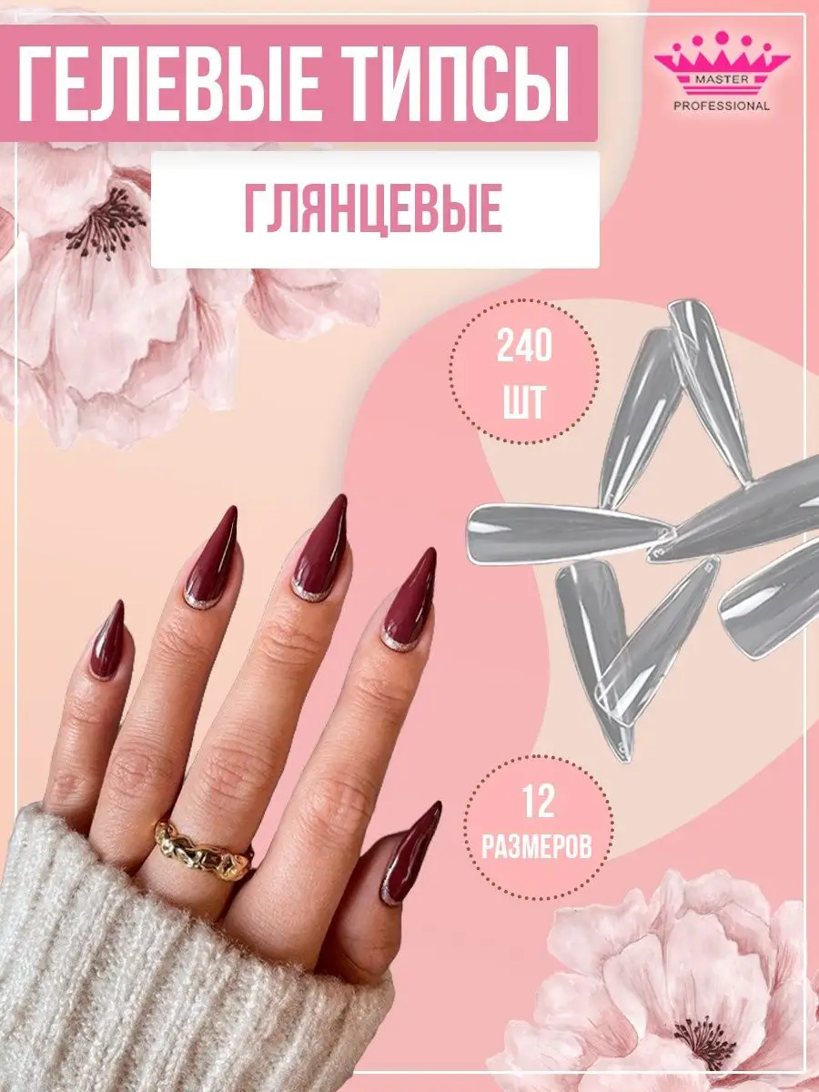 Типсы гелевые стилет глянцевые для наращивания 240 шт