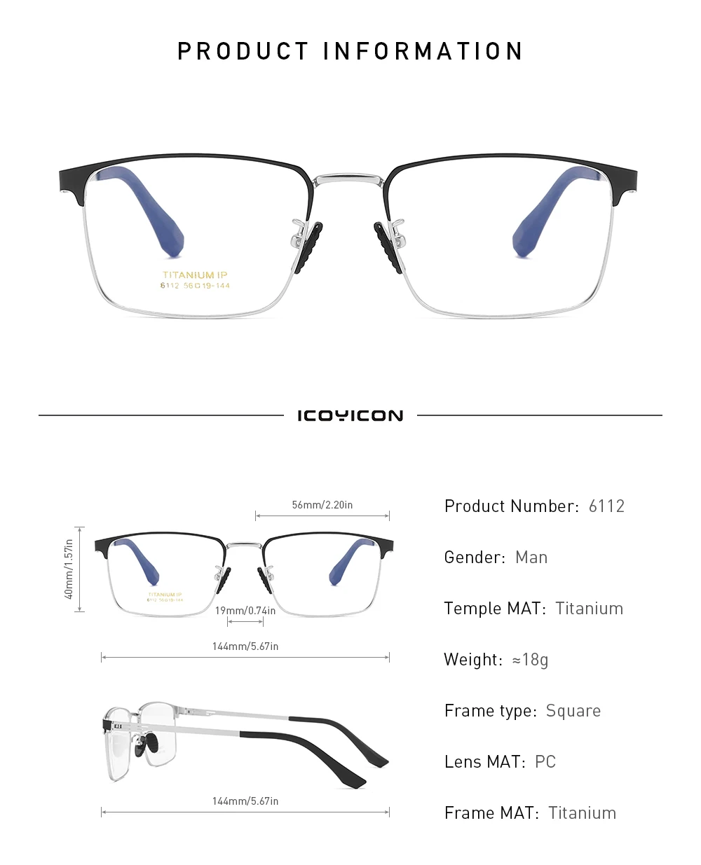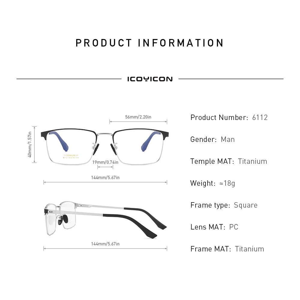 Титановые квадратные очки для мужчин, оправа для очков по рецепту при близорукости, Безвинтовые полные оптические очки, новинка, Классические 6112