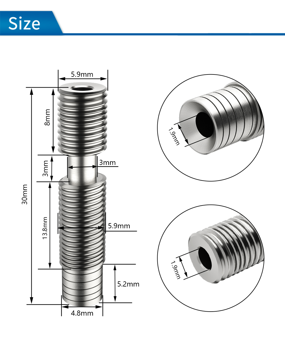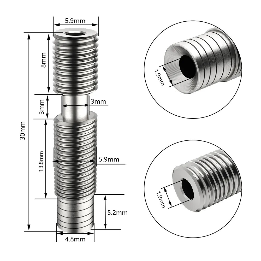 Kingroon 2 шт. KP3S оригинальные запчасти для 3D-принтера Heatbreak 1,75 мм филаментная горловина M6 6*30 мм теплоизоляция для экструдера Titan Hotend