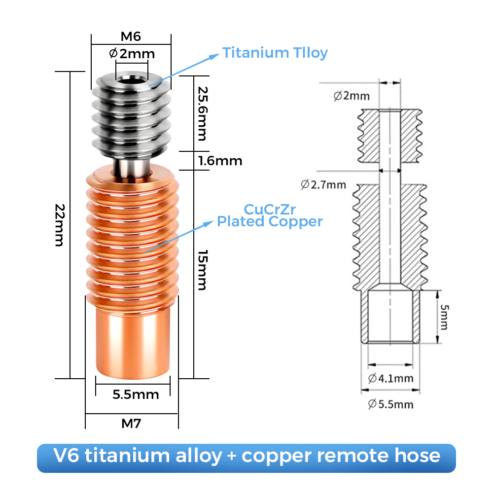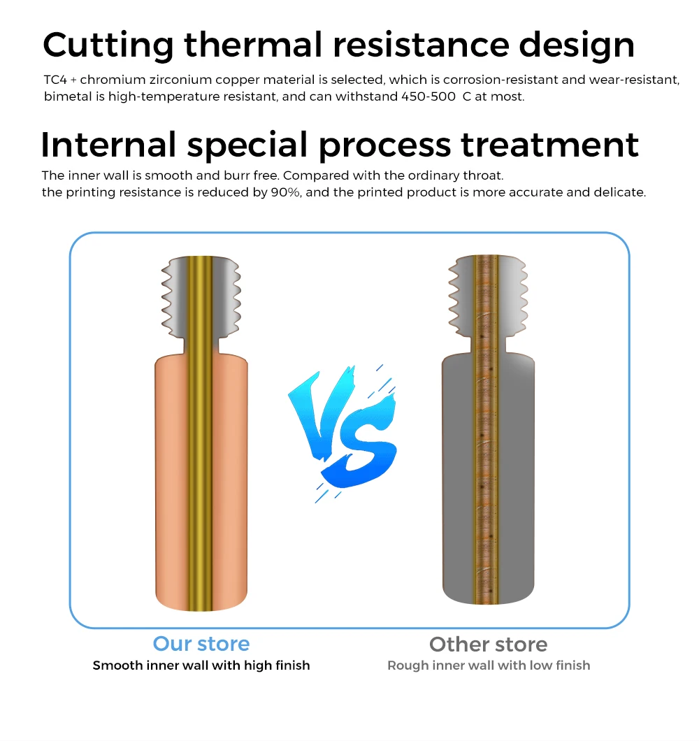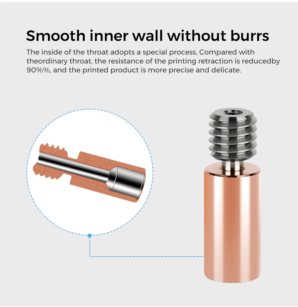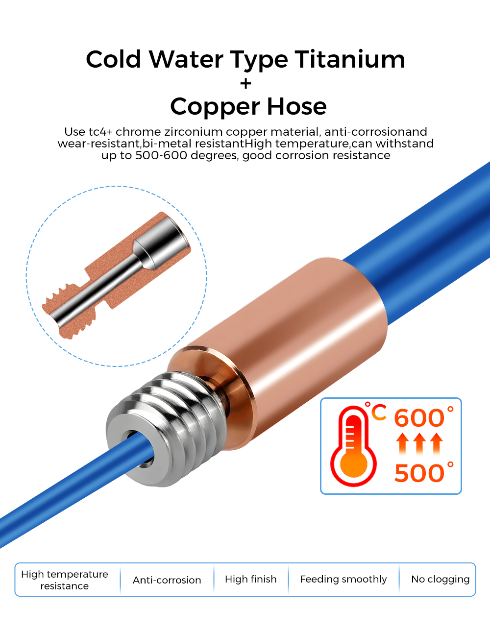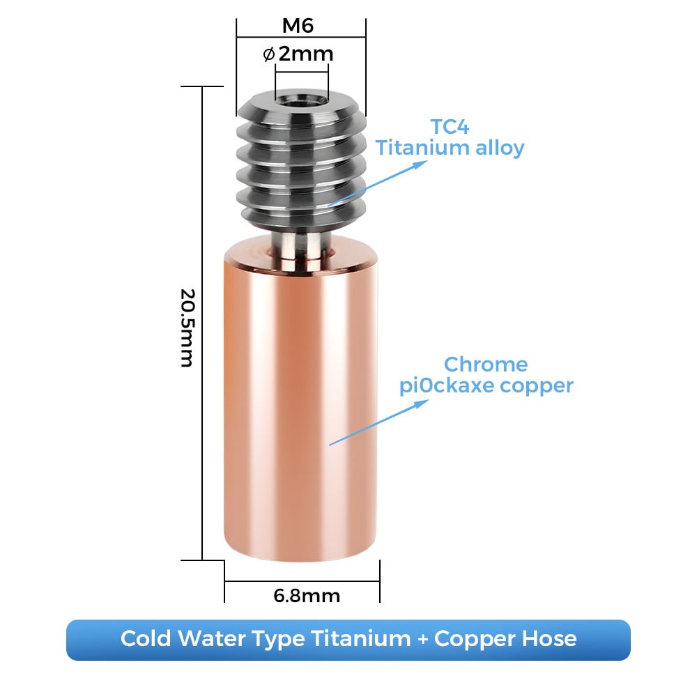 Два вида металлов используются для изготовления горловой трубки. Титан используется в передней части для уменьшения теплопроводности, в то время как медь используется в задней части для рассеивания тепла.