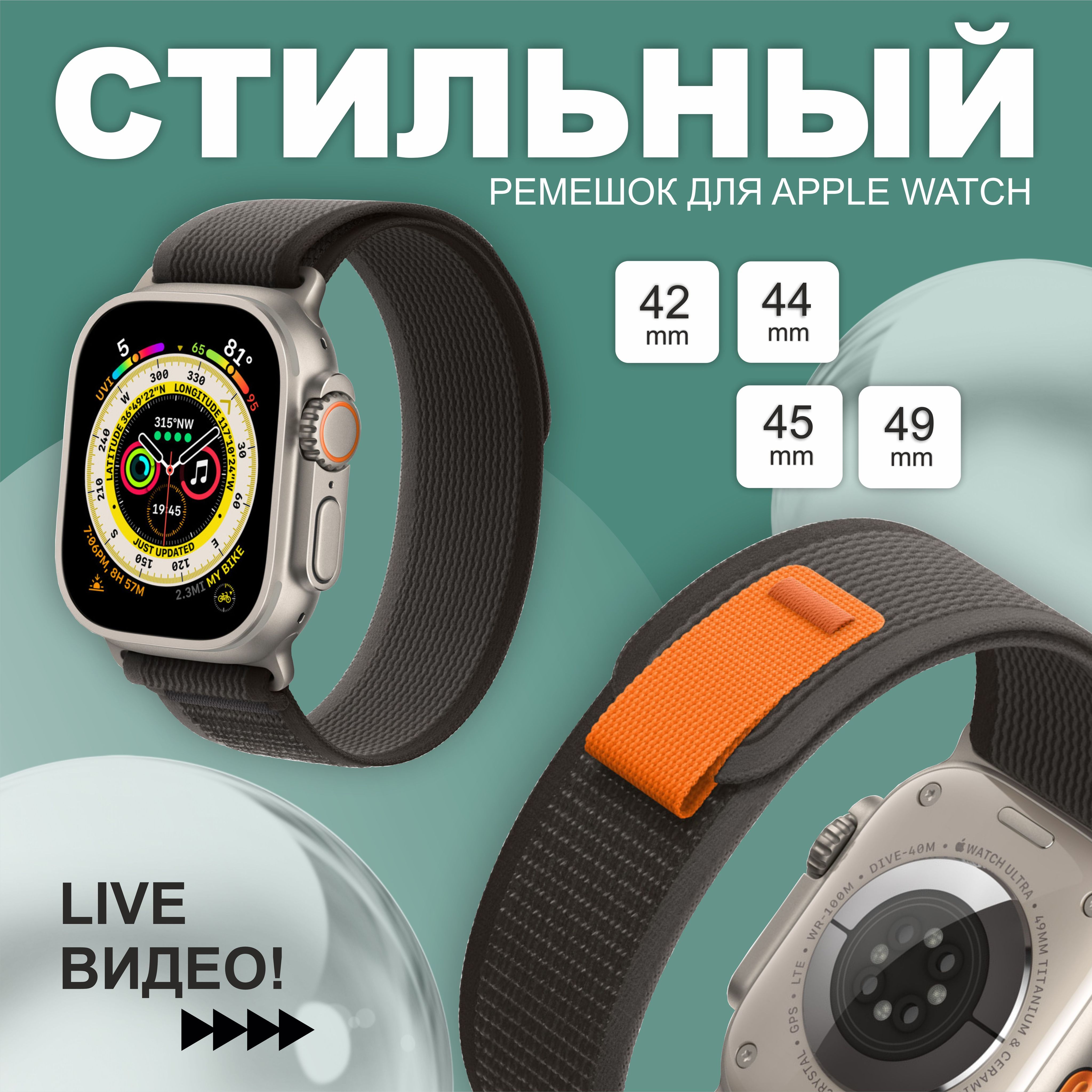 Тканевый нейлоновый ремешок Trail loop браслет для Apple Watch 42 мм 44 мм 45 мм 49 мм / 3 4 5 6 SE 7 8 Ultra