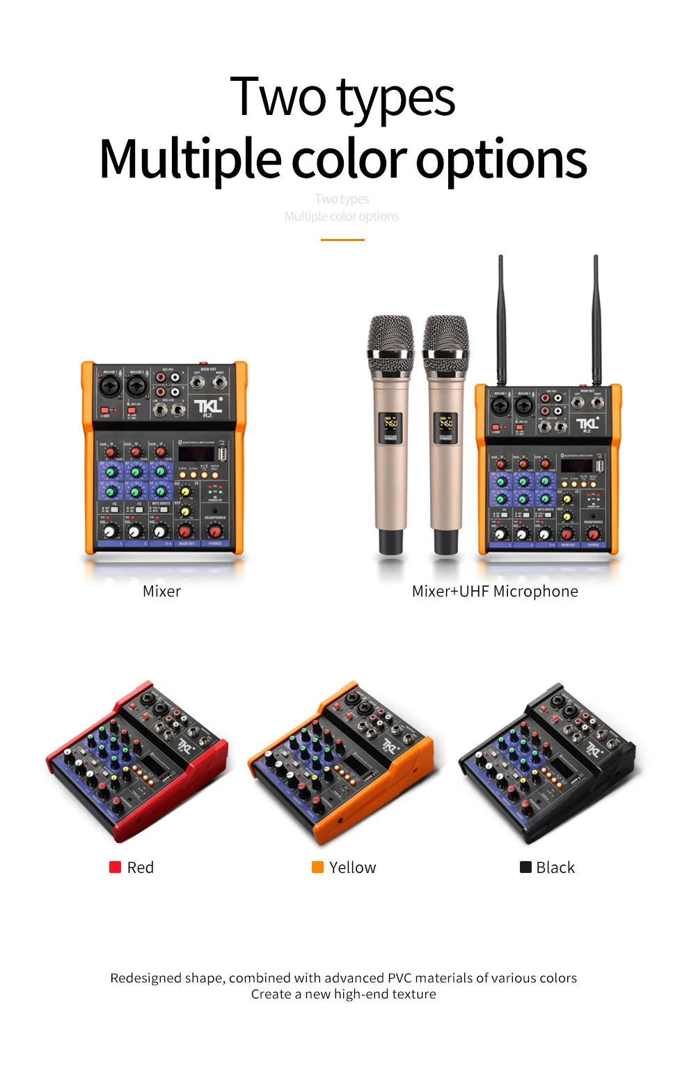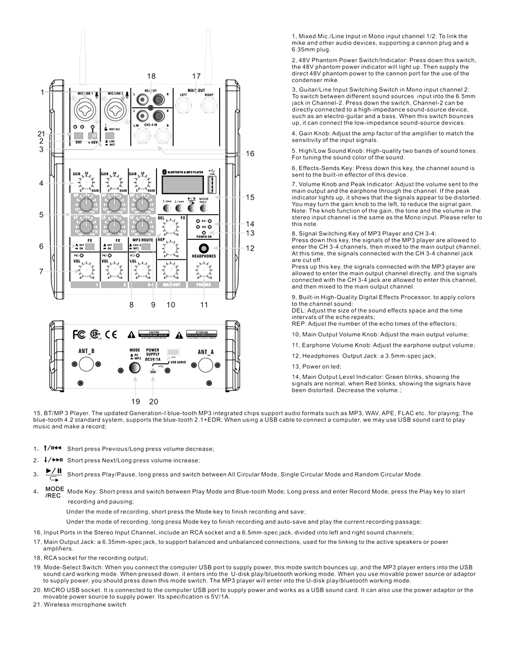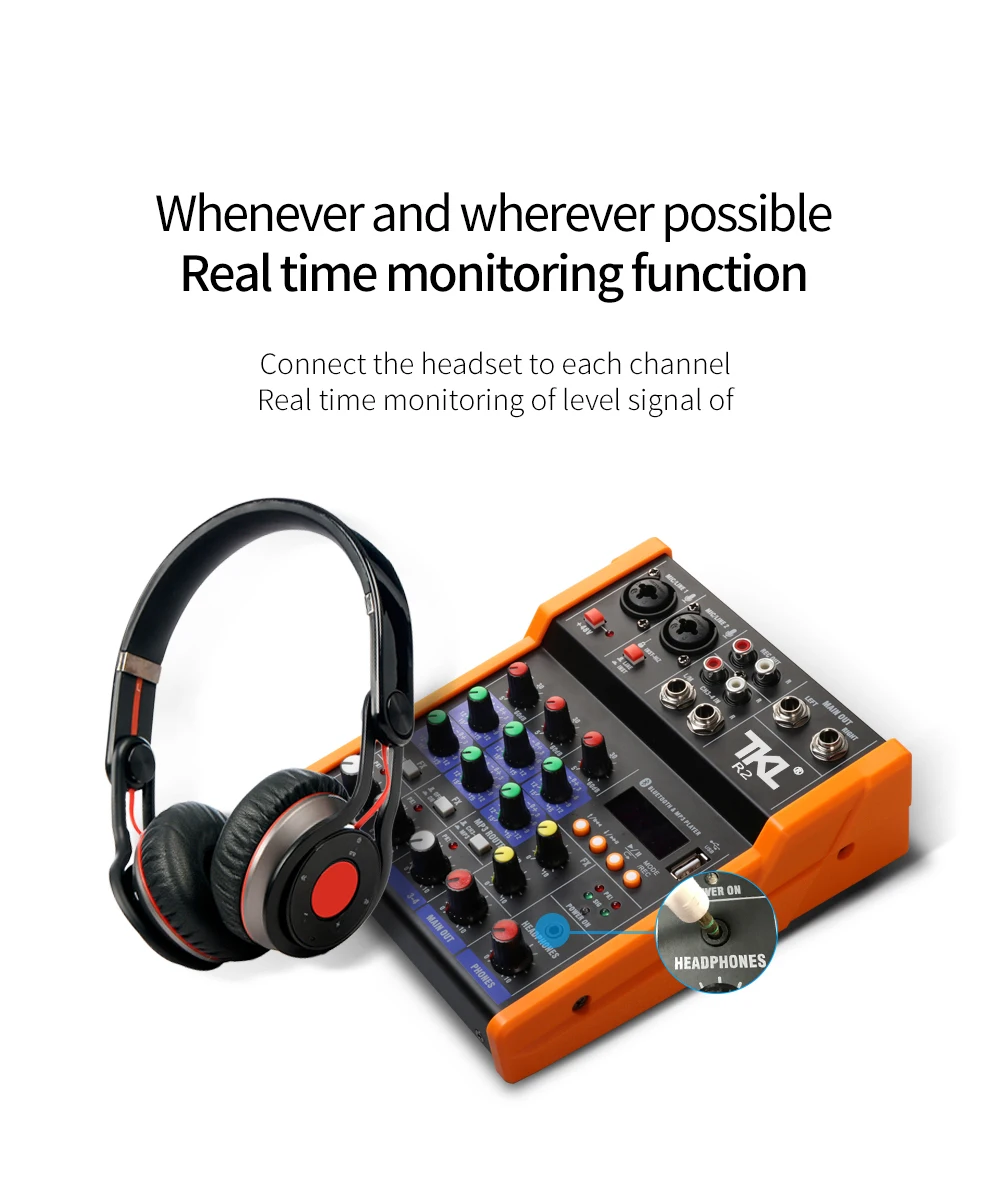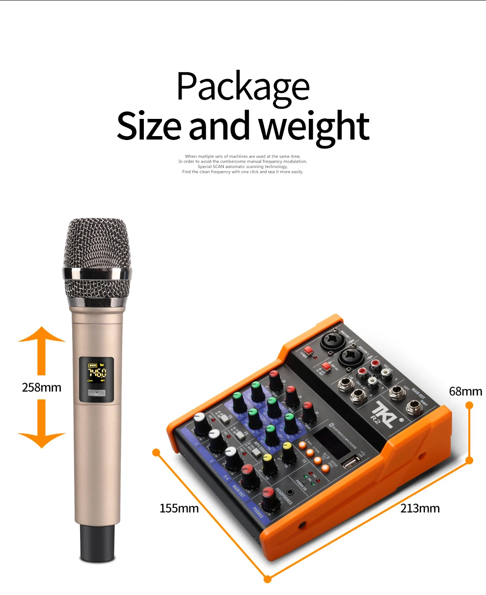 • Интеллектуальная Совместимость с различными устройствами: беспроводной микрофон, усилитель мощности, мобильный телефон, компьютер, электронный инструмент, проводной микрофон, аудио